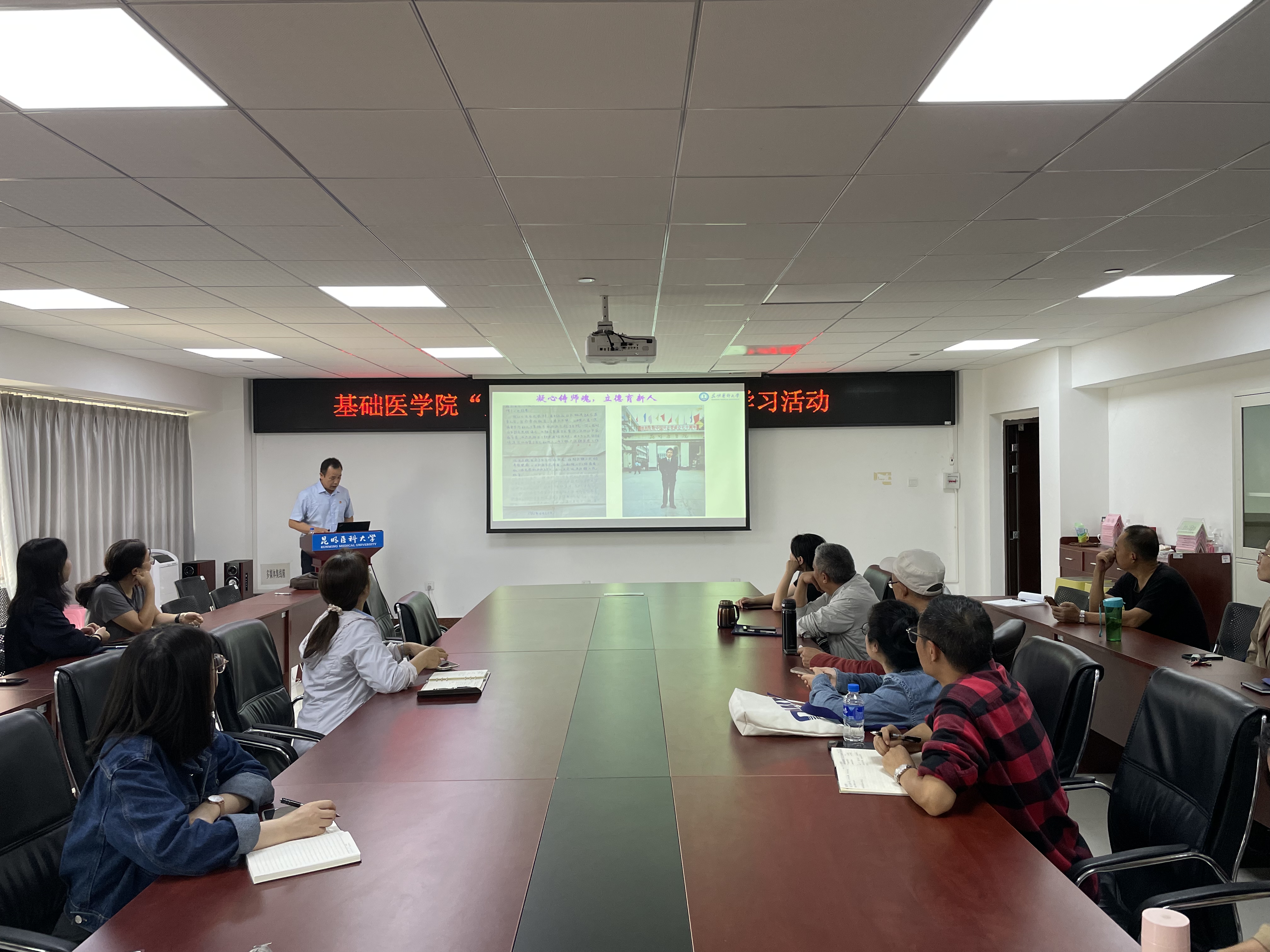 基础医学院于9月27日上午,在基础医药大楼614会议室开展“师德教育月”先进事迹学习活动,邀请“2023年云南省优秀教育工作者”称号获得者邹智荣教授进行先进事迹宣讲,学院党委书记杨正洲和基础医学院各部门教师代表参加活动。