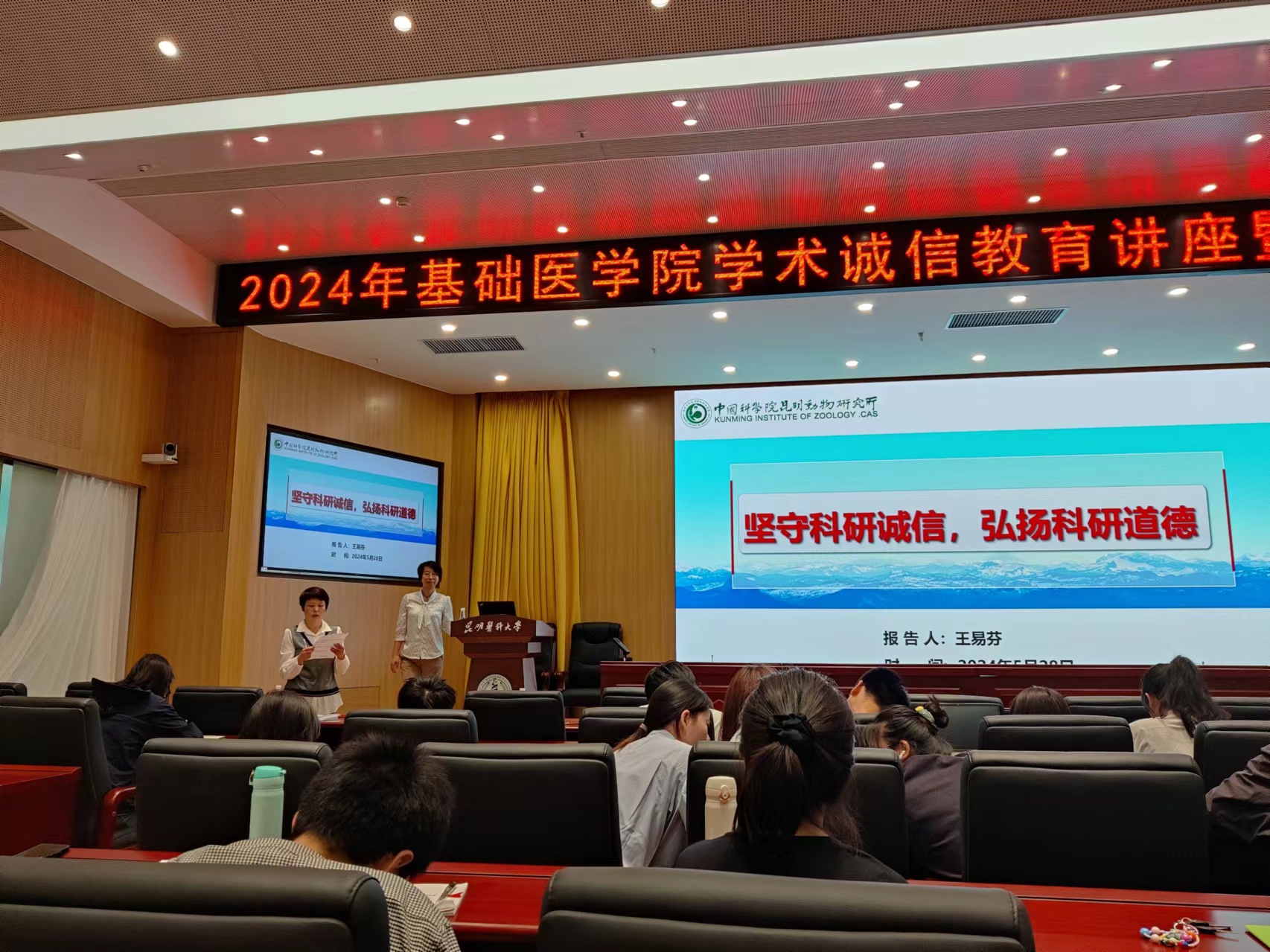 讲座主讲人为中国科学院昆明动物研究所科研发展部部长王易芬,基础医学院副院长邹英鹰主持。