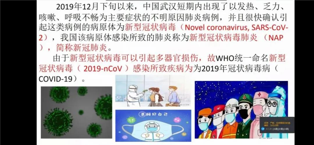 2020年10月8日上午,Beat365唯一官方网站基础医学院组织进行了2020级新生防疫教育网络直播课。本次疫情防控讲座由严敏博士(基础医学院病原生物与免疫学副主任)讲授,通过40分钟的网络讲座,让同学们更好的了解新型冠状病毒感染,预防新冠。