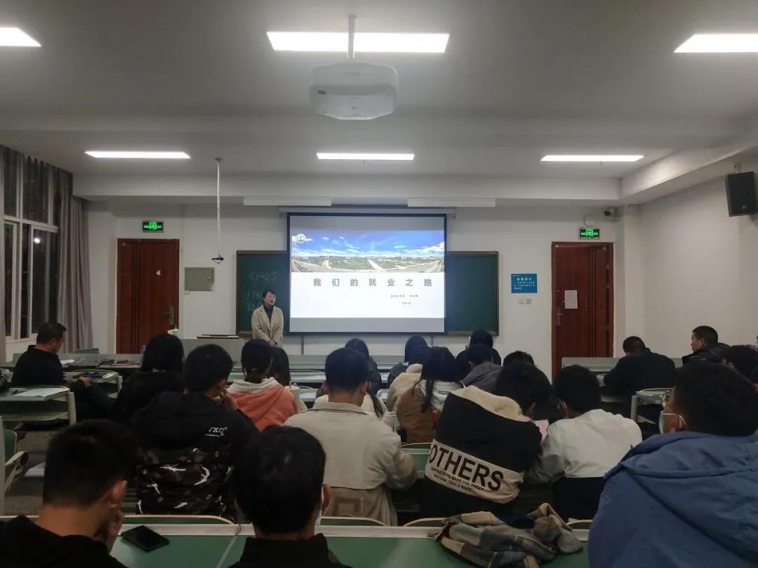管琳娜副院长从大学生就业形势、情势、政策等三个方面为同学们做就业指导及政策解读。管副院长指出:进入后疫情时代,就业形势受到多方面的冲击,但学院始终坚持把毕业生的工作放在心上,扛在肩上。当下就业形势严峻,岗位大量缺乏与逐年增长的毕业生之间的矛盾愈发突出,需要各方力量共同推进就业工作。一方面学院积极对接用人单位,举办线上、线下双选会,为毕业生提供全方位、多渠道的就业岗位;另一方面毕业生应该树立正确的择业观、就业观,找准自我定位,开拓眼界不拘泥于体制内岗位。