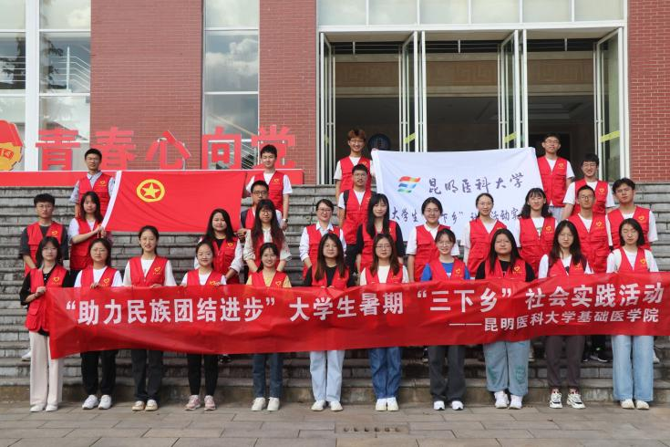 为贯彻落实习近平总书记关于青年工作的重要思想和考察云南重要讲话精神,以铸牢中华民族共同体意识为主线,2022年7月12日至13日,基础医学院社会实践团队赴昆明市石林彝族自治县开展“助力民族团结进步”社会实践活动。出征仪式上,基础医学院党委副书记管琳娜对社会实践活动提出了希望和要求,社会实践队一行29名师生参加。社会实践队围绕实地考察调研、民族团结宣传片拍摄、急救和创伤医学知识科普等活动,帮助和引导青年学生了解认知当前的乡村状况,在社会实践中受教育、长才干、做贡献。