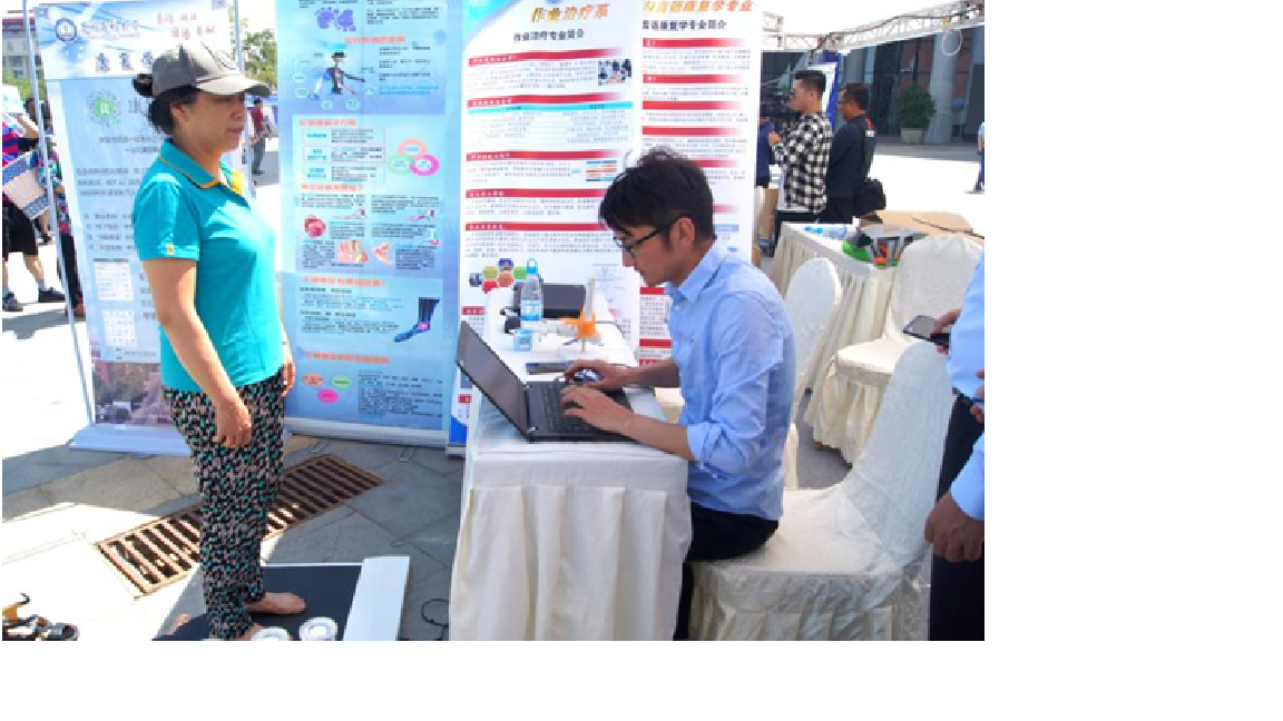 刘巍老师向前来咨询的市民普及了康复医学相关的知识,特别是针对足部问题的康复咨询,并现场为多名患有足部问题的患者做了足底压力分析与测试。