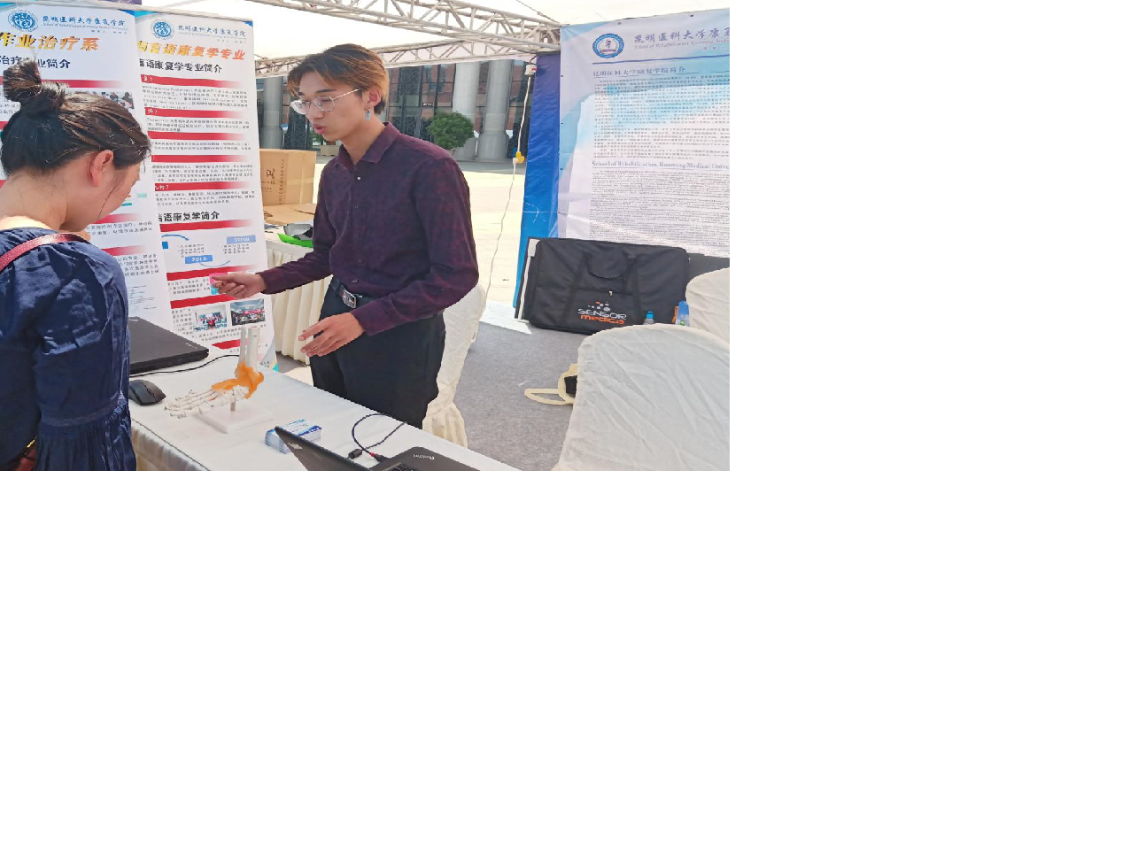 2019年5月19日上午10:30—15:00,康复学院在云南省博物馆与云南省大剧院外广场参加“2019年云南省暨昆明市科技活动周启动式”,并进行了科技成果的展示。康复学院此次参展由刘巍老师带队,罗凯旋、易沙沙、李晗、胡旭毅、朱琪等同学参与。