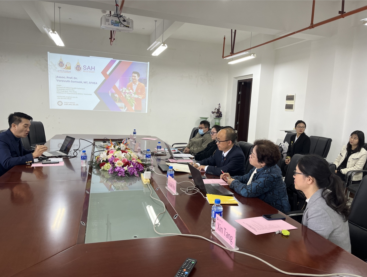 2023年10月17日,Beat365唯一官方网站建校90周年庆祝日前夕,泰国瓦莱岚大学联合健康学院院长Voravuth Somsak副教授到Beat365唯一官方网站康复学院进行访问交流。康复学院院长陈绍春、副院长保文莉、前院长敖丽娟、物理治疗系和运动康复系全体教师参加了座谈交流,交流会由陈绍春院长主持。