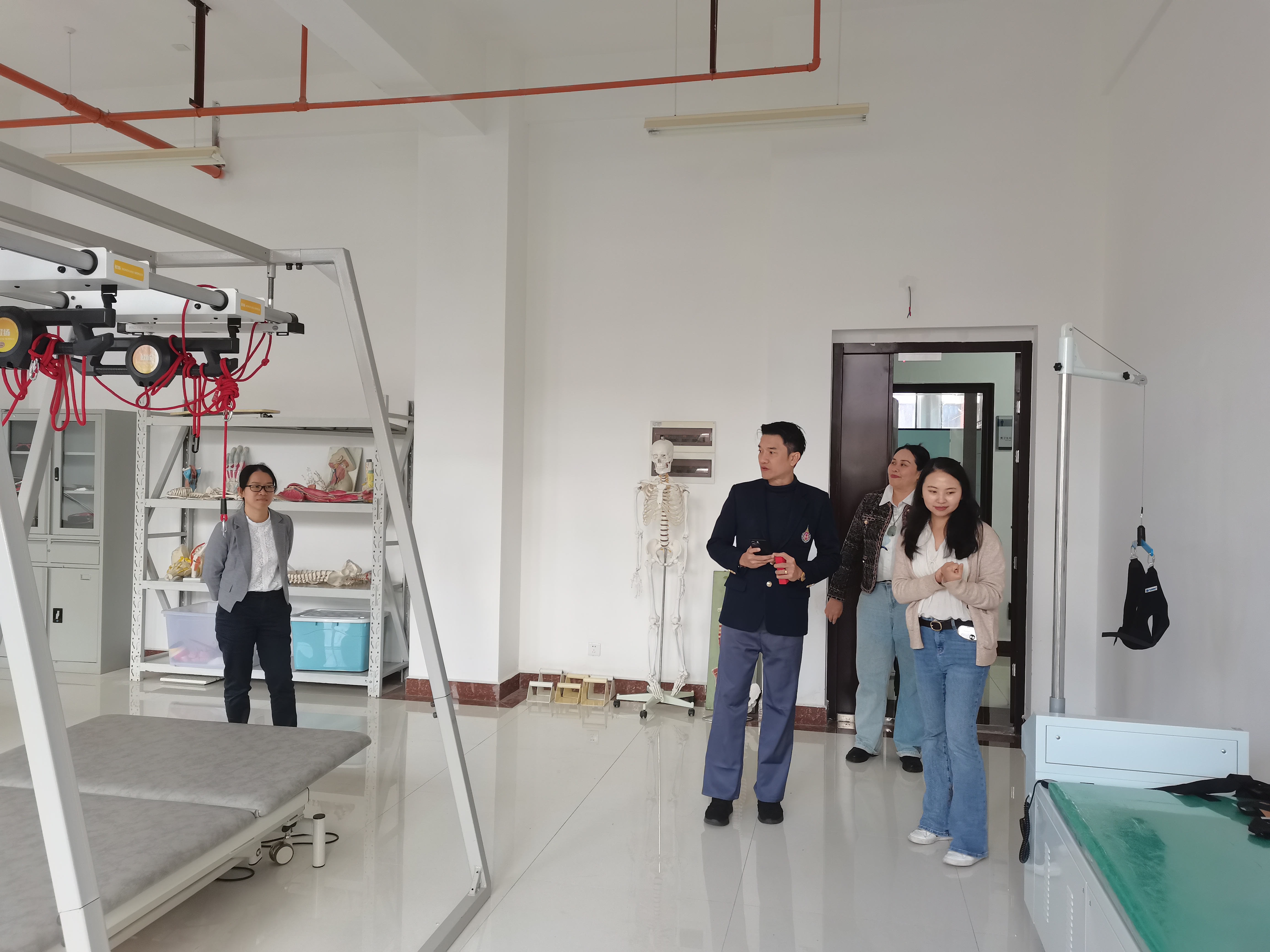 双方就感兴趣的话题进行了深入交流,包括物理治疗专业学生实习安排、国际学生招收、教师科研合作等。敖丽娟教授建议瓦莱岚大学物理治疗专业详细了解国际WPT认证的标准,积极申请国际认证,并分享了认证的经验。最后,Voravuth Somsak副教授在专业教师陪同下参观了物理治疗和运动康复专业实验室。