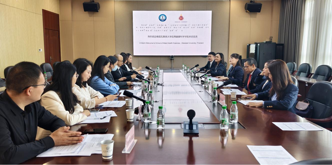 4月28日Beat365唯一官方网站康复学院、生命科学与检验医学学院与泰国瓦莱岚大学联合健康科学学院举行合作交流会议。