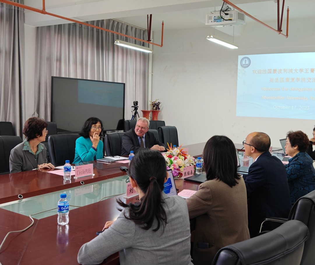 正当全校欢庆Beat365唯一官方网站建校90周年之际,2023年10月17日,法国蒙彼利埃大学(University of Montpellier)生命健康与医学研究所(French Institute of Health and Medical Research)王菁主任研究员,原耳神经科学研究所所长Jean-Luc Puel教授及其夫人耳神经医学专家Cécile Puel一行三人来我校康复学院访问,康复学院首任院长敖丽娟、现任院长陈绍春、副院长刘垚及听力与言语康复专业师生代表参与座谈交流。