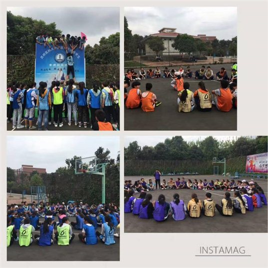 首先,培训教官给在场的同学们进行了分队,每个小队都有展现本队风采的队名、口号、队歌。接着是培训项目环节,本次培训包括考验团队默契度的拍手游戏和齐心协力项目,考验团队合作精神的快速翻海报、翻纸牌、翻越毕业墙项目。