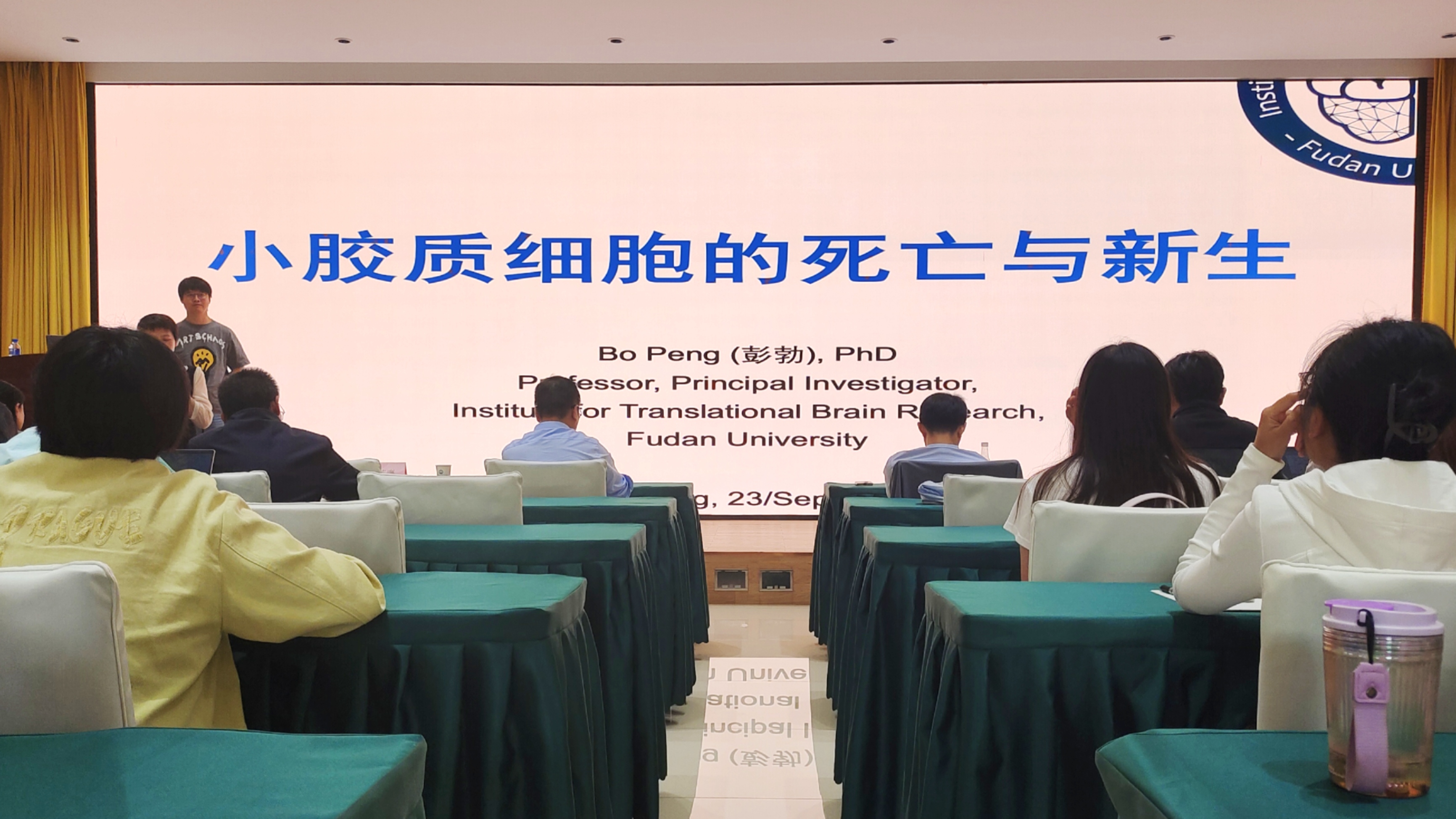 复旦大学彭勃研究员以“小胶质细胞的死亡与新生”为题,围绕死亡小胶质细胞碎片的清除机制、新生小胶质细胞的起源、小胶质细胞的功能与衰老、以小胶质细胞为靶点治疗疾病四个层面展开,着重为师生分享了用正常小胶质细胞来替换突变细胞,以达到减缓神经系统病程、保护神经的作用。彭勃研究员在前期研究中将小胶质细胞替换应用于临床,治疗CSF1R相关性白质脑病,取得显著成效。这不仅为我们基础研究转向临床实践带来了巨大动力,也为今后脑部疾病的治疗带来曙光。