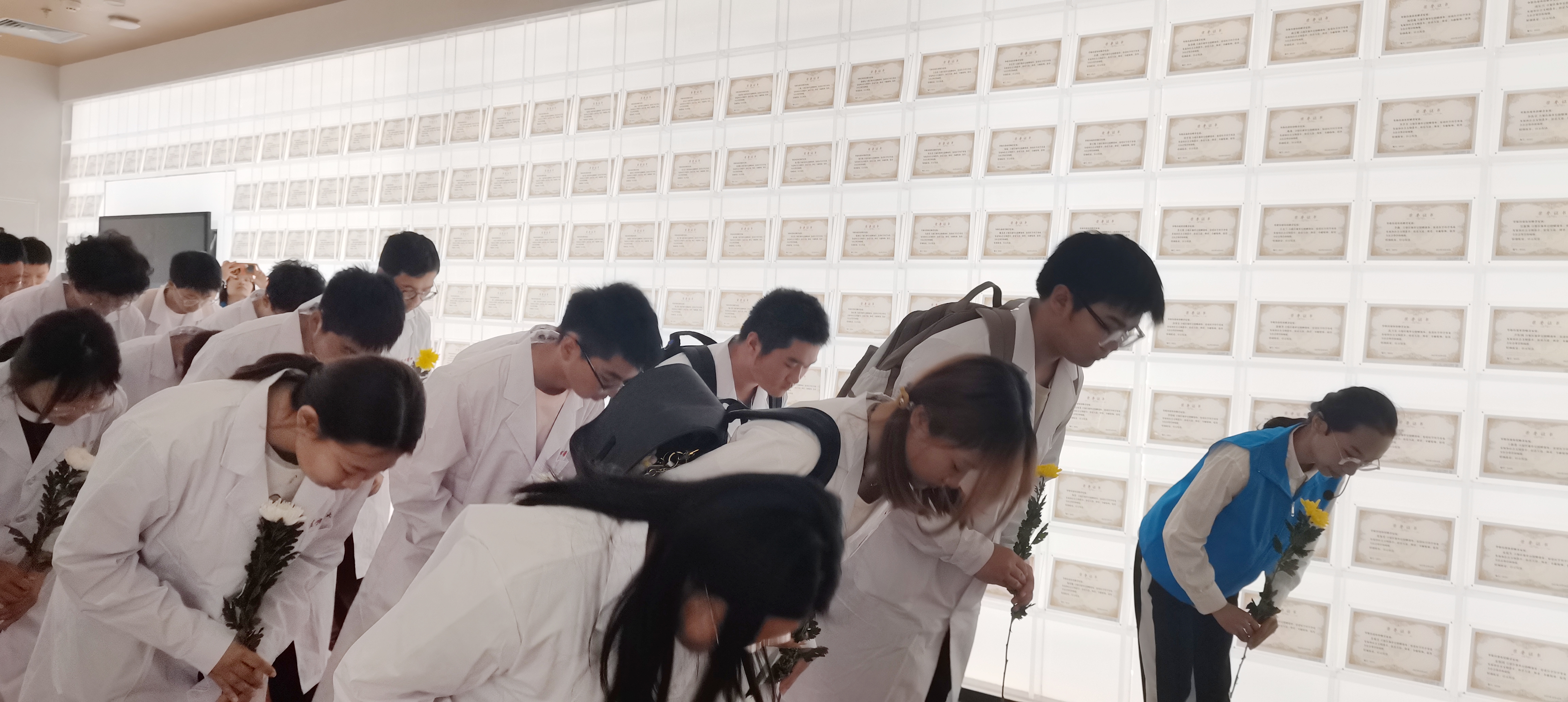 最后,学生在志愿者引导下对人体科学馆进行参观,并在参观中向遗体捐献志愿者鞠躬、献花,以表达对“无语良师”的崇高敬意。