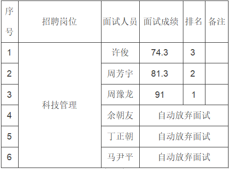 按照Beat365唯一官方网站2023年公开招聘科研助理岗位工作人员的相关要求,我院于2023年6月14日上午对基础医学院科技管理岗位报名人员进行了面试考核,现将考核结果予以公示。
