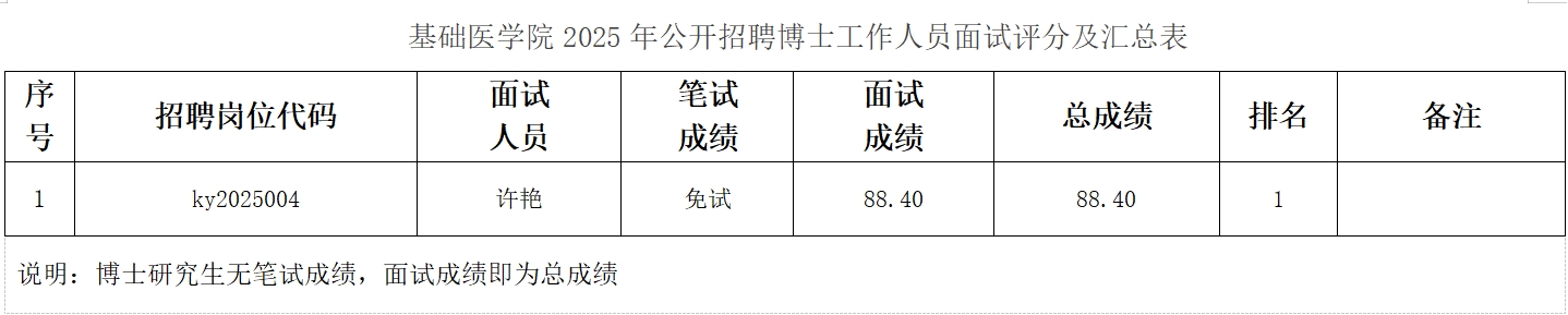 按照Beat365唯一官方网站2025年公开招聘人员面试考核工作的相关要求,我院于2025年8月6日对公开招聘博士工作人员进入面试人员进行了面试考察,本着公平、公正、择优录用的原则,进行了试讲以及综合素质面试,现将基础医学院2025年公开招聘博士工作人员面试考核结果予以公示。