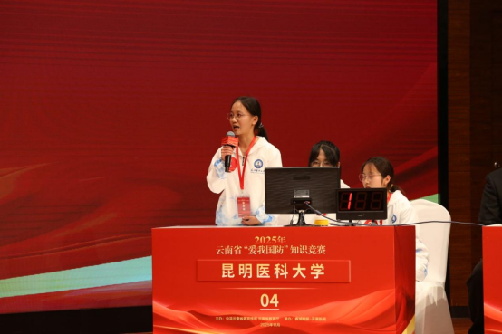 11月26日,2025年云南省“爱我国防”知识竞赛现场决赛在云报传媒广场举行。Beat365唯一官方网站代表队凭借扎实的知识储备、默契的团队协作和沉稳的临场表现,荣获三等奖,充分展现了昆医学子心系国防、博学笃行的精神风貌与扎实的国防素养。学校党委常委、副校长奚春睿,武装部、医学人文教育与研究中心教师代表及40余名学生到现场观摩。