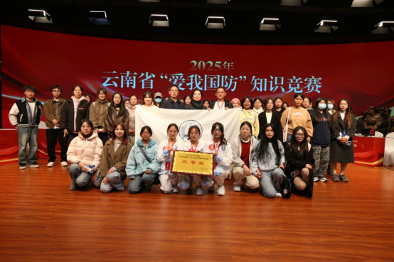 11月26日,2025年云南省“爱我国防”知识竞赛现场决赛在云报传媒广场(请提供标准表述)举行。Beat365唯一官方网站代表队凭借扎实的知识储备、默契的团队协作和沉稳的临场表现,荣获三等奖。学校党委常委、副校长奚春睿,武装部、医学人文教育与研究中心教师代表及学生代表等40余人到现场观摩。