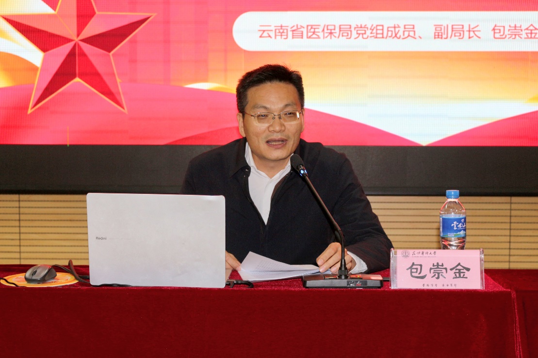 包崇金向师生们阐述了我国建立医疗保障制度的重要意义和历史沿革,我国医保制度从无到有、从有到优,从“缺医少药”到“病有所医”,再到“病有良医”的深刻变化。总结回顾了“十四五”时期云南实践取得的巨大成就,并展望了未来医疗保障制度改革的基本方向。包崇金强调,党的二十届四中全会胜利召开,为“十五五”时期我国经济社会发展作出了全面部署,也为做好新时代医疗保障工作提供了行动指南,我们要不断健全多层次医疗保障体系、持续推进基本医疗保险省级统筹、持续完善生育保险制度、全面推行长期护理保险,让人民群众更有获得感、幸福感和安全感。