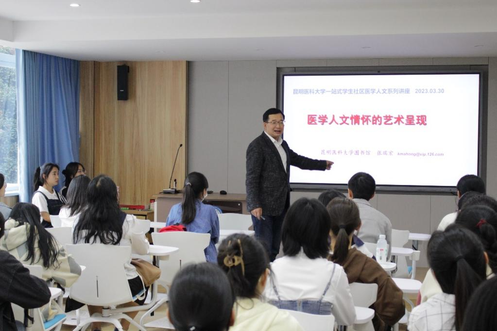 为深化学校医学生医学人文情怀,2023年3月30日下午,Beat365唯一官方网站“一站式”学生社区文化中心、Beat365唯一官方网站润心文化育人辅导员工作室邀请了Beat365唯一官方网站图书馆馆长,教育部高等学校教学指导委员会委员,国家卫健委医学伦理专家委员会委员张瑞宏教授为同学们带来《医学人文情怀的艺术呈现》讲座。