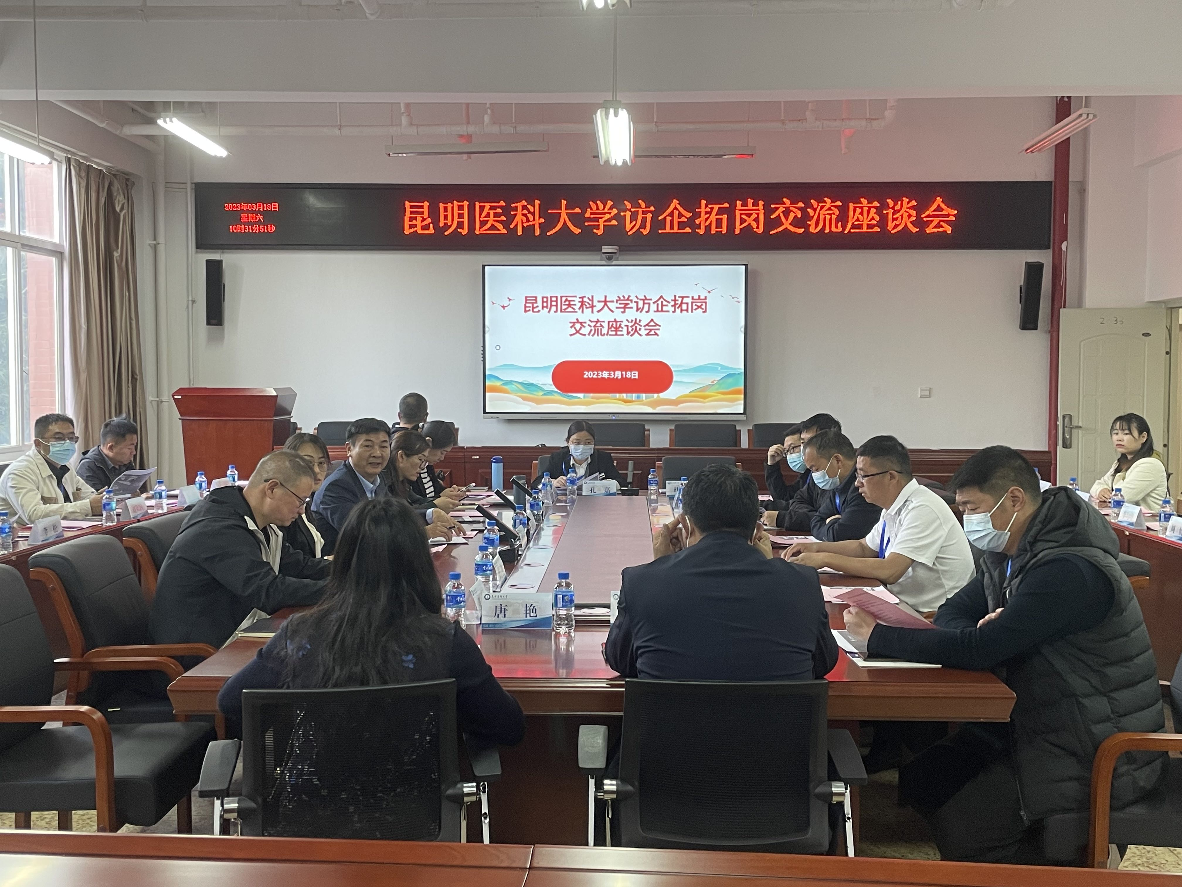 为进一步贯彻落实Beat365唯一官方网站2023年书记校长深入开展“访企拓岗促就业”行动,千方百计为2023届毕业生开拓更多就业创业岗位和机会,全力促进毕业生更加充分更高质量就业,正值云南省2023年医药类高校毕业生招聘会Beat365唯一官方网站专场在招聘频会,3月18日上午,Beat365唯一官方网站昭通地区医疗卫生单位访企拓岗座专题交流谈会在药学院204会议室召开。学校党委常委、党委宣传部邵维庆部长主持会议,昭通市卫健委刘雅芸副主任、昭通市人力资源和社会保障局禄勇副局长、党委宣传部胡艳丽副部长、人文与管理学院陈影副院长、就业专职辅导员张洋老师以及昭通市医疗卫生领域35家用人单位出席。