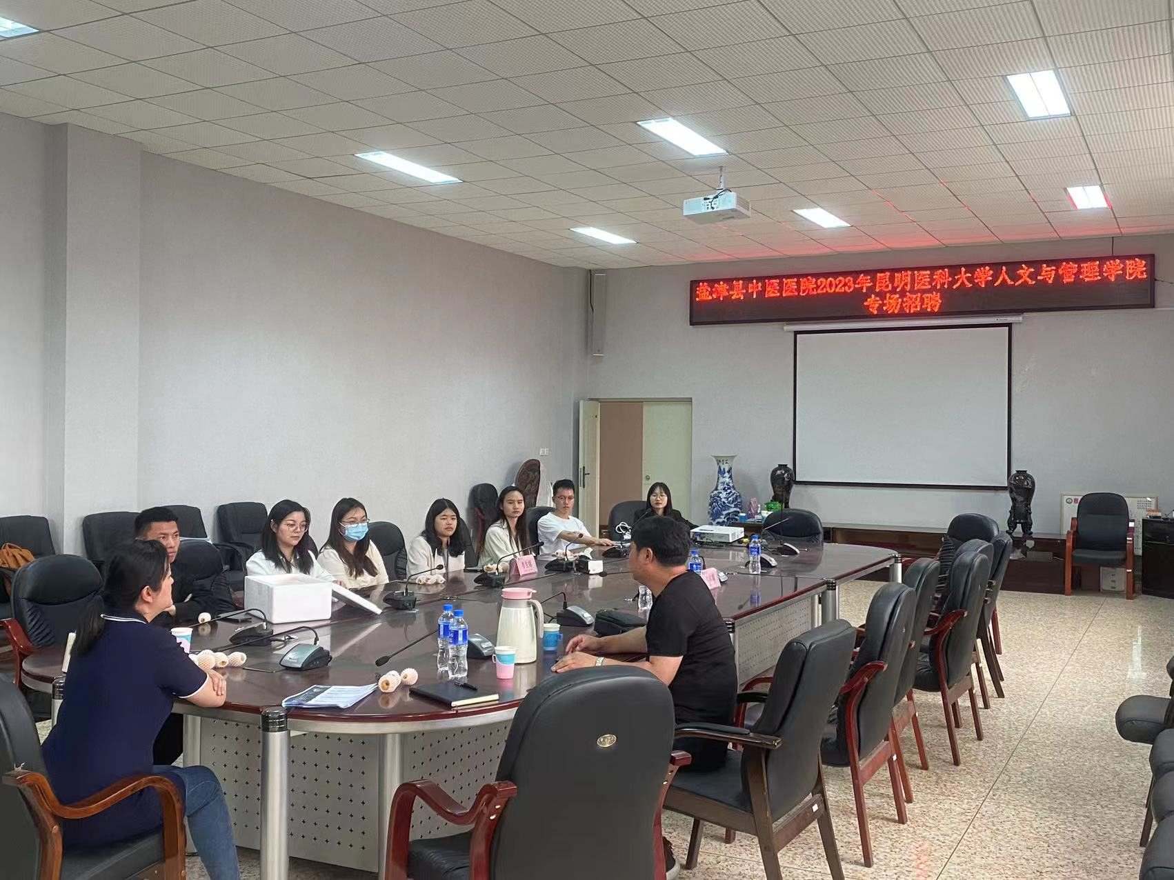 座谈会上,罗萍书记对盐津县中医医院的领导和工作人员表示欢迎,感谢医院长期以来对人文与管理学院发展和就业工作的关心和支持。她简要介绍了人文与管理学院的发展和2023届毕业生基本情况,并强调学院将进一步加强与盐津县中医医院的交流与合作,给学生提供更多的就业机会,实现供需共赢。医院胡宇院长对学院的人才培养工作予以了高度认可,并希望以此次招聘为契机,加强医院与学院的沟通和协作,选拔优秀的毕业生到盐津县中医医院工作。