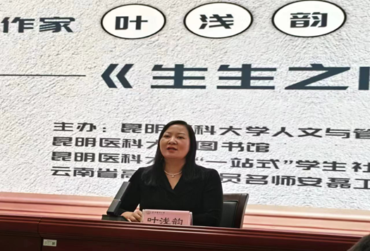 首先,叶浅韵老师阐述了自身从一个农村小女孩成长为一名作家的奋斗历程,分享了自己从故乡到城市生活价值观的变化,向同学们说明了《生生之门》的写作背景。