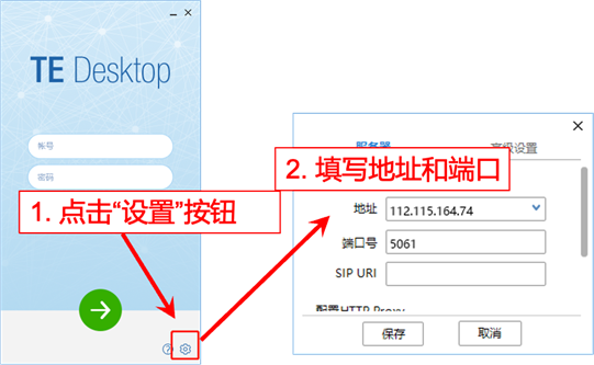 首次登录需要设置服务器地址及端口,点击右下角设置,填上昆医大视频会议服务器地址112.115.164.74,端口5061,点击保存。之后登陆第一次设置的数据会保存在软件之中不用再次设置。
