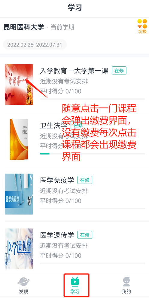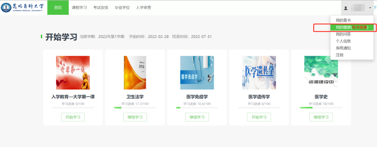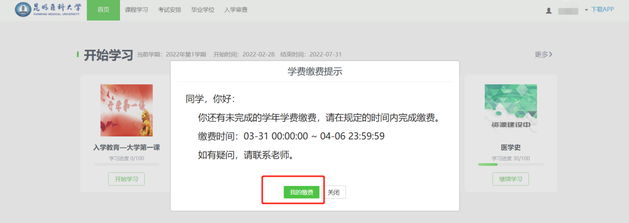手机登录青书学堂APP,点击任意一门网络课程进行缴费。
