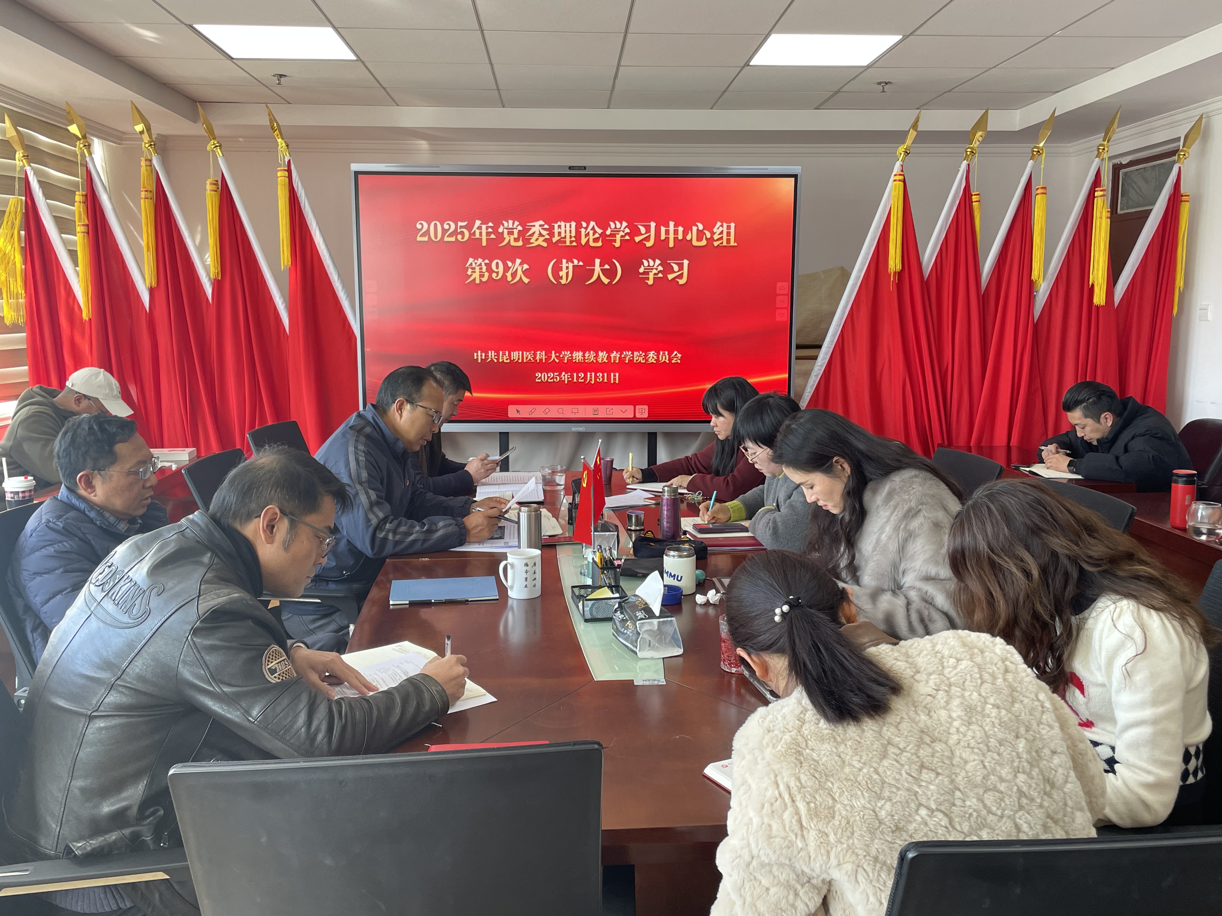 2025 年 12 月 31 日 ,学院召开 2025 年党委理论学习中心组第九次(扩大)学习会。学院党委理论学习中心组成员及全体党员参加学习,以理论武装凝聚发展共识,以规划研讨擘画奋进蓝图。