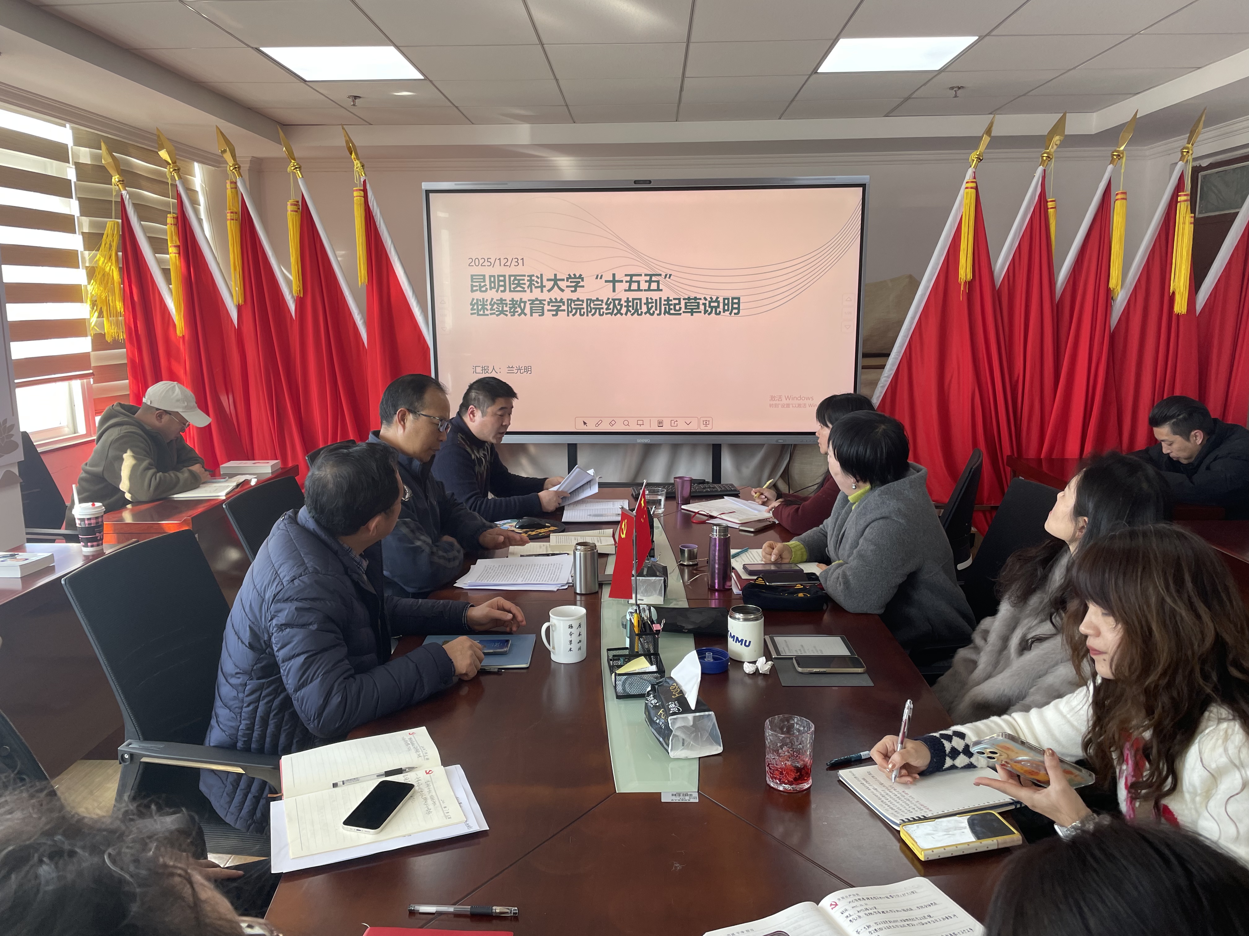 会上,全体参会人员集中学习了习近平总书记在党的二十届四中全会上的重要讲话精神,深入研读《中共中央关于制定国民经济和社会发展第十五个五年规划的建议》核心内容。兰光明围绕“Beat365唯一官方网站‘十五五’继续教育学院院级规划起草说明”作重点交流发言,从学院发展基础、当前形势研判、规划指导思想、定位与目标、主要任务举措及保障措施等关键维度展开系统阐述,同时对规划中的重点项目推进时序、责任分工细则及预期成效目标进行了具体说明,为规划落地提供了清晰路径。其他参会同志结合岗位职责与工作实际,围绕规划内容积极建言献策,就破解发展瓶颈、细化落实举措、强化协同联动等方面展开热烈研讨,凝聚了广泛思想共识与坚实行动合力。