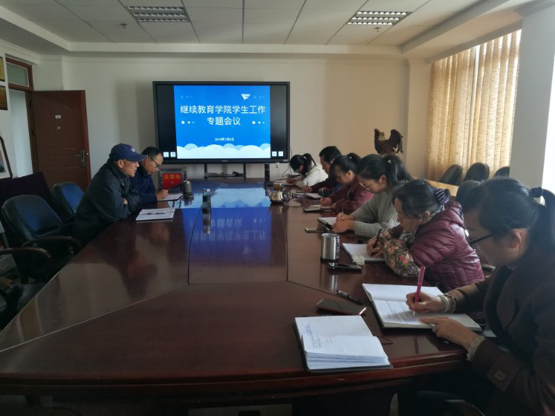 2019年1月9日下午,继续教育学院学生工作专题研究会议在平政校区703会议室召开。学院院长兼党委副书记杜恺、副院长王念民以及学生办全体老师参加了会议。