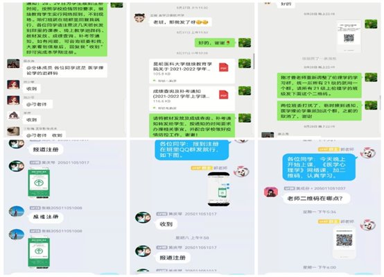 新学期,学生采取的是线上报到,学院建立“分班到人”责任制,由辅导员负责,学生通过班级QQ群、微信群、钉钉群等平台,提交健康码和14天内的行程码,完成网络报到注册。辅导员特别关注的是疫区的学生,通过沟通,有针对性的协助解决报到、转教学点、上课困难等实际问题,并进行心理疏导,确保学生的思想稳定。