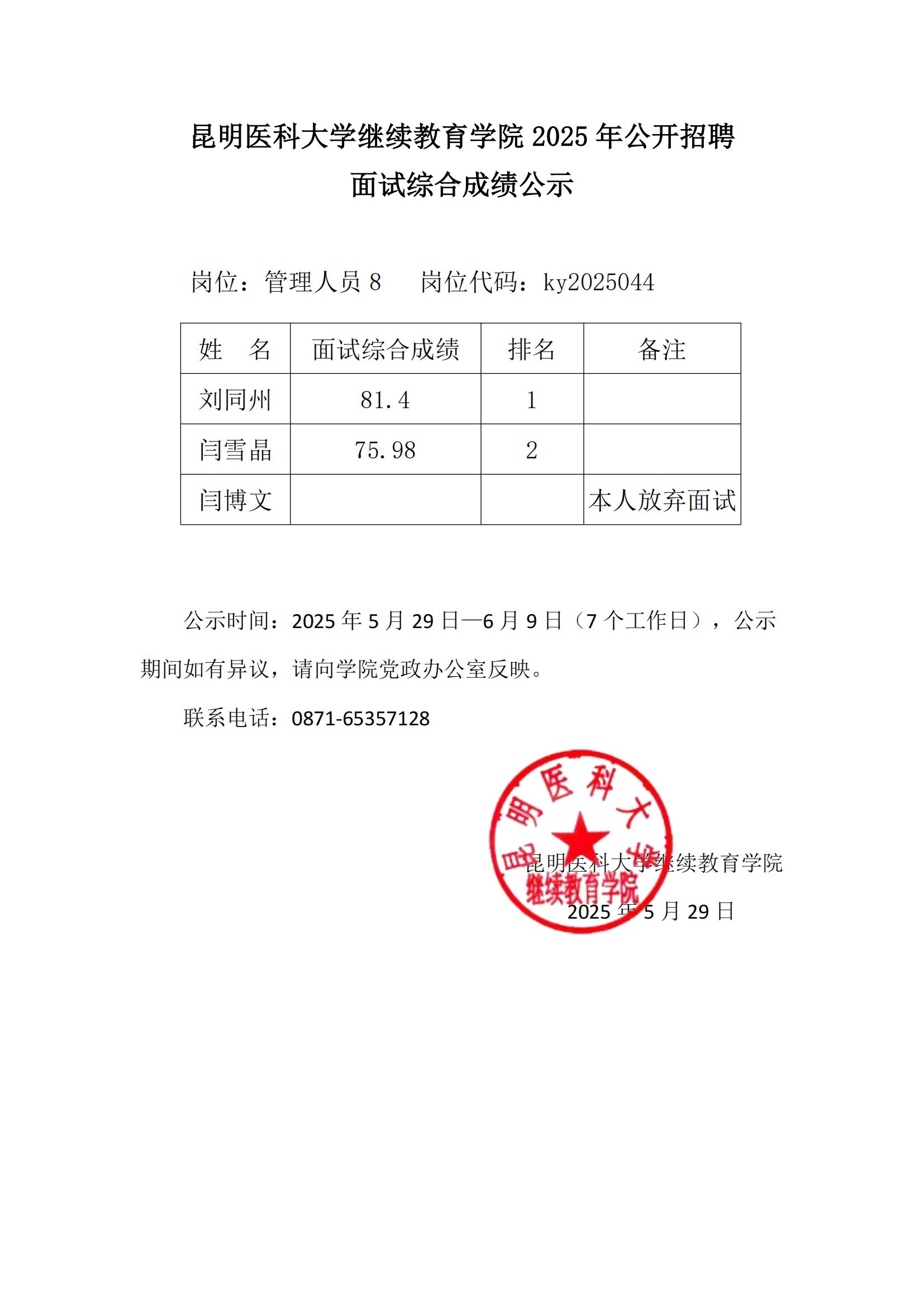Beat365唯一官方网站继续教育学院2025年公开招聘面试综合成绩公示