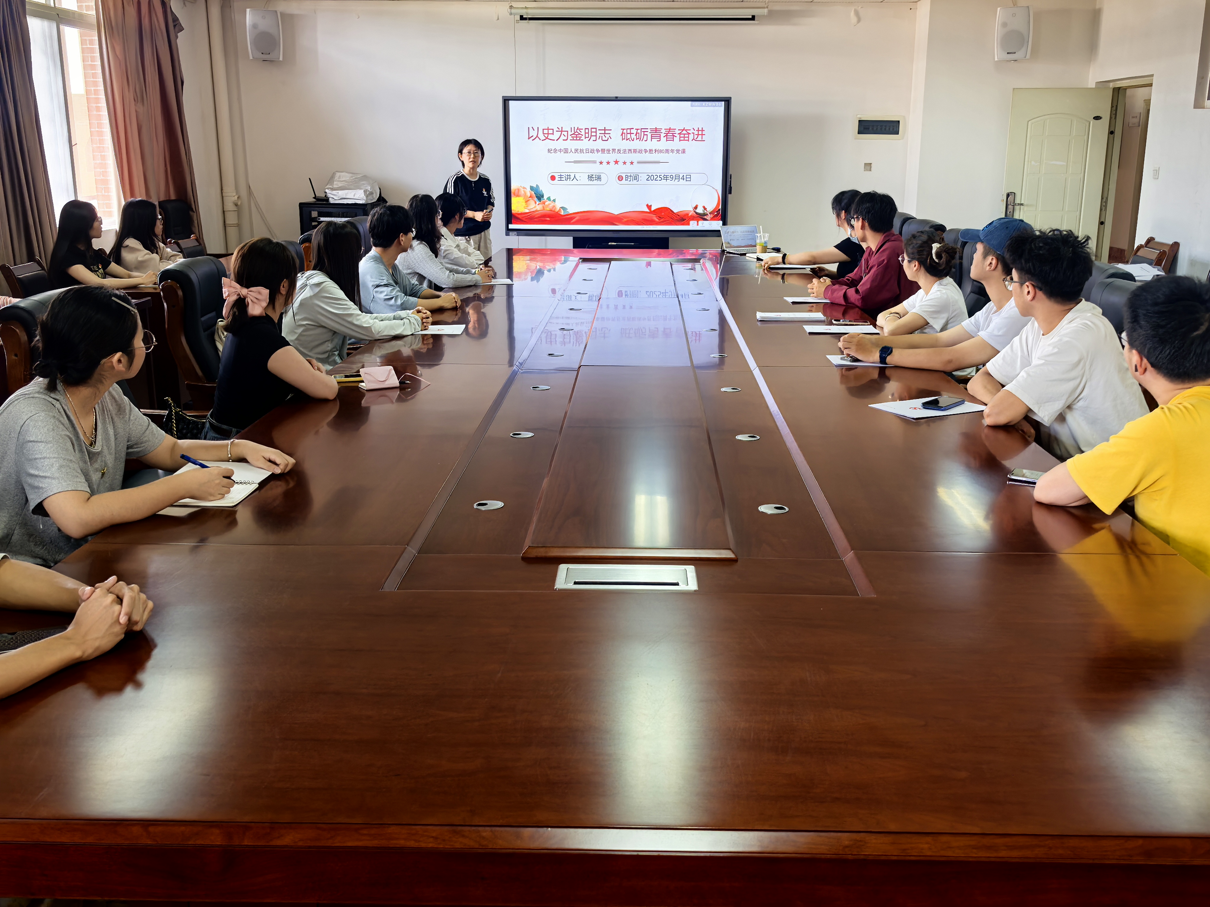 2025年9月4日,法医学生党支部开展“以史为鉴明志 砥砺青春奋进 纪念中国人民抗日战争暨世界反法西斯战争胜利80周年”专题党课,共计20余名党员同志参与。