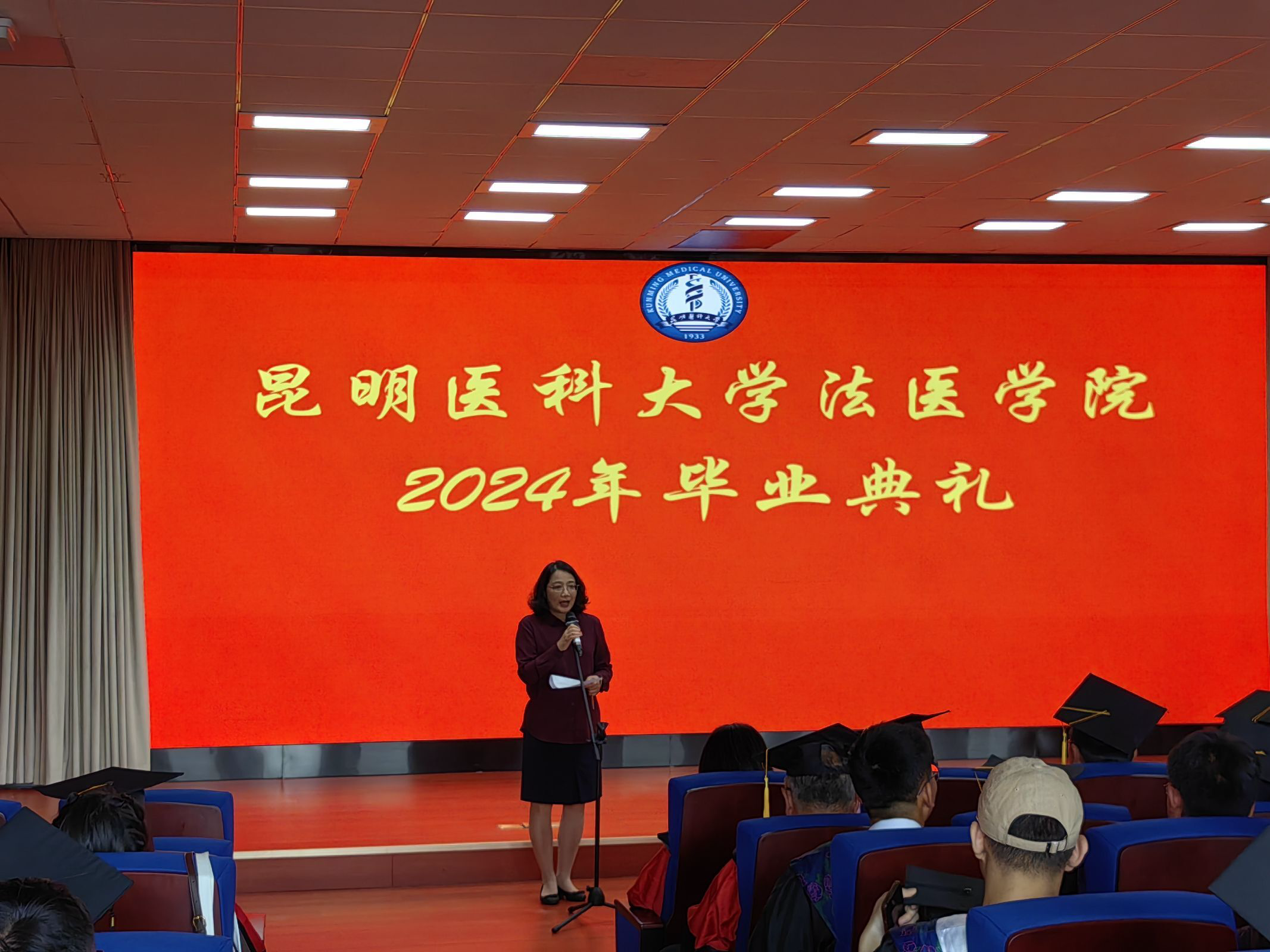 2024年6月26日下午法医学院全体党政领导、教职工以及2024届毕业生齐聚一堂,在法医学院模拟法庭隆重举行了毕业典礼,部分学生家长代表亦应邀出席。典礼由法医学院党委唐敏书记主持。典礼上,本科毕业生代表、硕士毕业生代表、在校学生代表、教师代表依次发言,法医学院院长洪仕君教授致辞。全体硕士、博士生导师共同为获得博士、硕士、学士学位的152名毕业生颁发了学位证书。此外,学院对本科升研学生进行表彰。