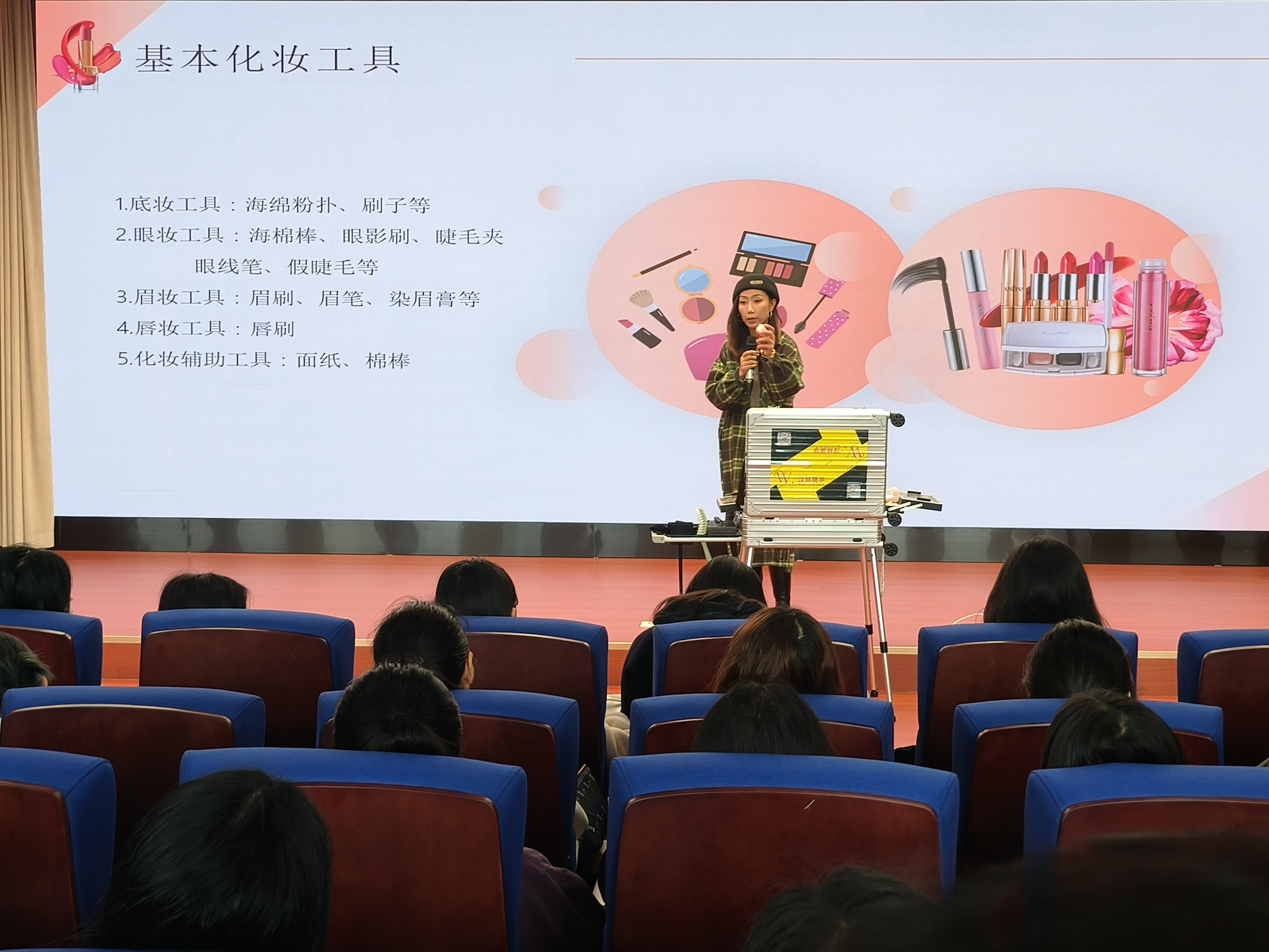 此次培训通过理论讲解与实际操作相结合的方式,边示范边讲解,对同学们进行了生活妆、职业妆的系列化妆技巧培训。活动现场气氛热烈融洽,师生互动积极,参与学生收获颇多。