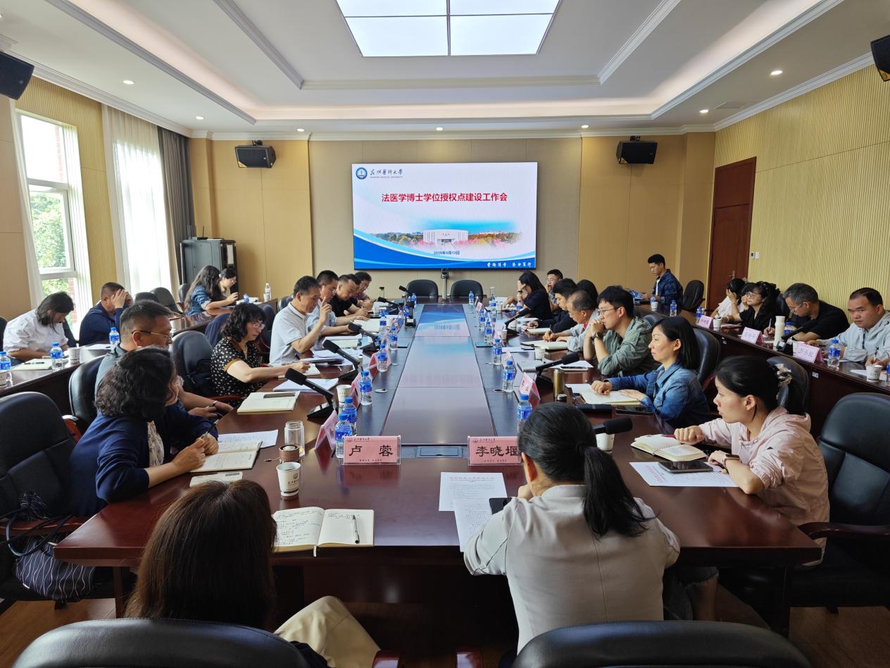 会上,法医学院院长洪仕君作“法医学学科学位点建设工作汇报”,从“十四五”期间法医学学科建设成效及建设基础、学位点建设工作推进情况、工作思路、重点任务及举措等4个方面,对法医学学科的发展基础、博士学位授权点建设存在的问题及建设思路进行了全面梳理。