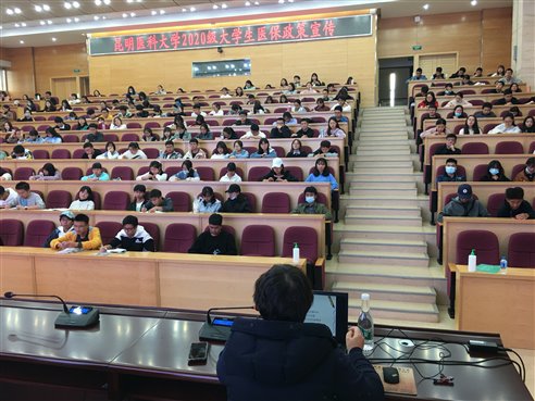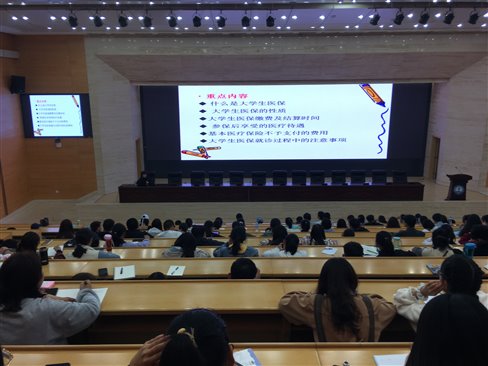 2020年11月6日18:00,在学生工作处杨俊芬副处长的带领下,由校医院负责大学生医保工作的专职人员对2020级各学院年级老师、班主任、各班班长及生活委员进行大学生医保相关知识培训。本次培训从什么是大学生医保、大学生医保性质、参保后享受的医疗待遇以及大学生医保使用过程中应注意的问题等六个方面进行详细讲解。参与培训的老师和同学认真听讲并做笔记,同时也就老师和同学在使用医保过程中遇到的具体问题进行现场答疑。