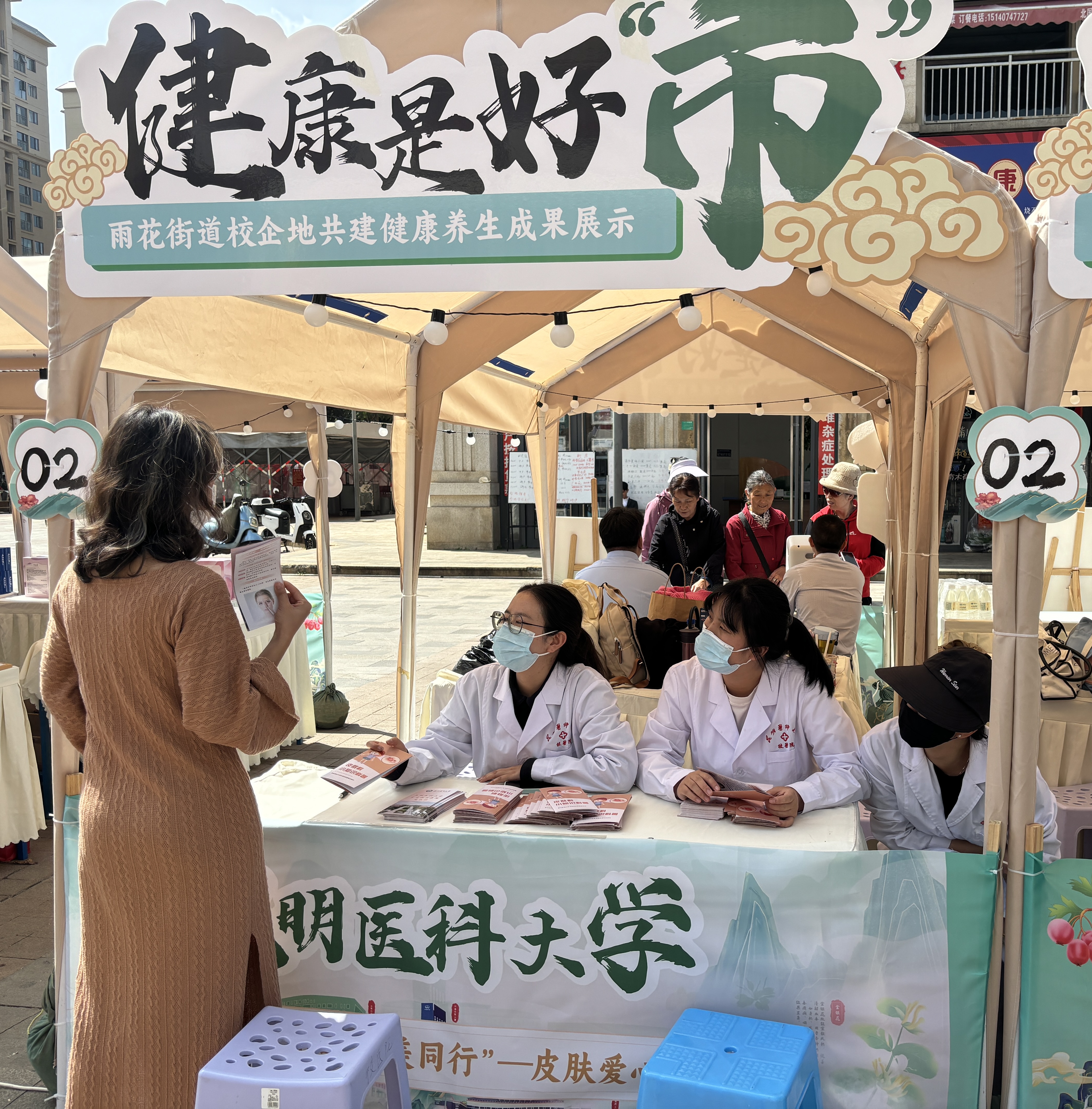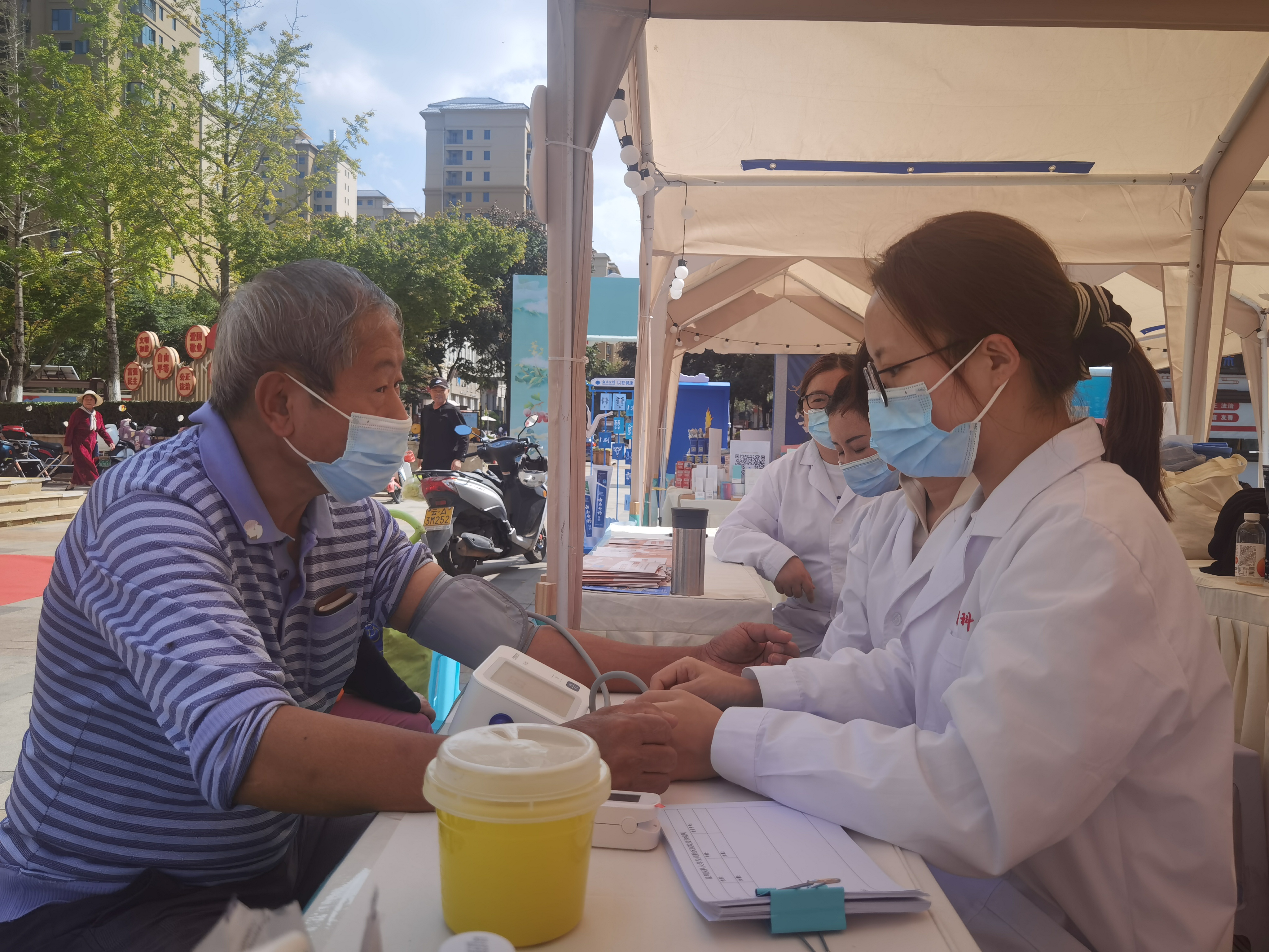 为充分展示校企地共建成果、弘扬健康养生文化,10月18日上午,由呈贡区人民政府雨花街道办事处主办的“雨花艺术节”健康嘉年华活动开幕,校医院一行14人参与义诊活动。