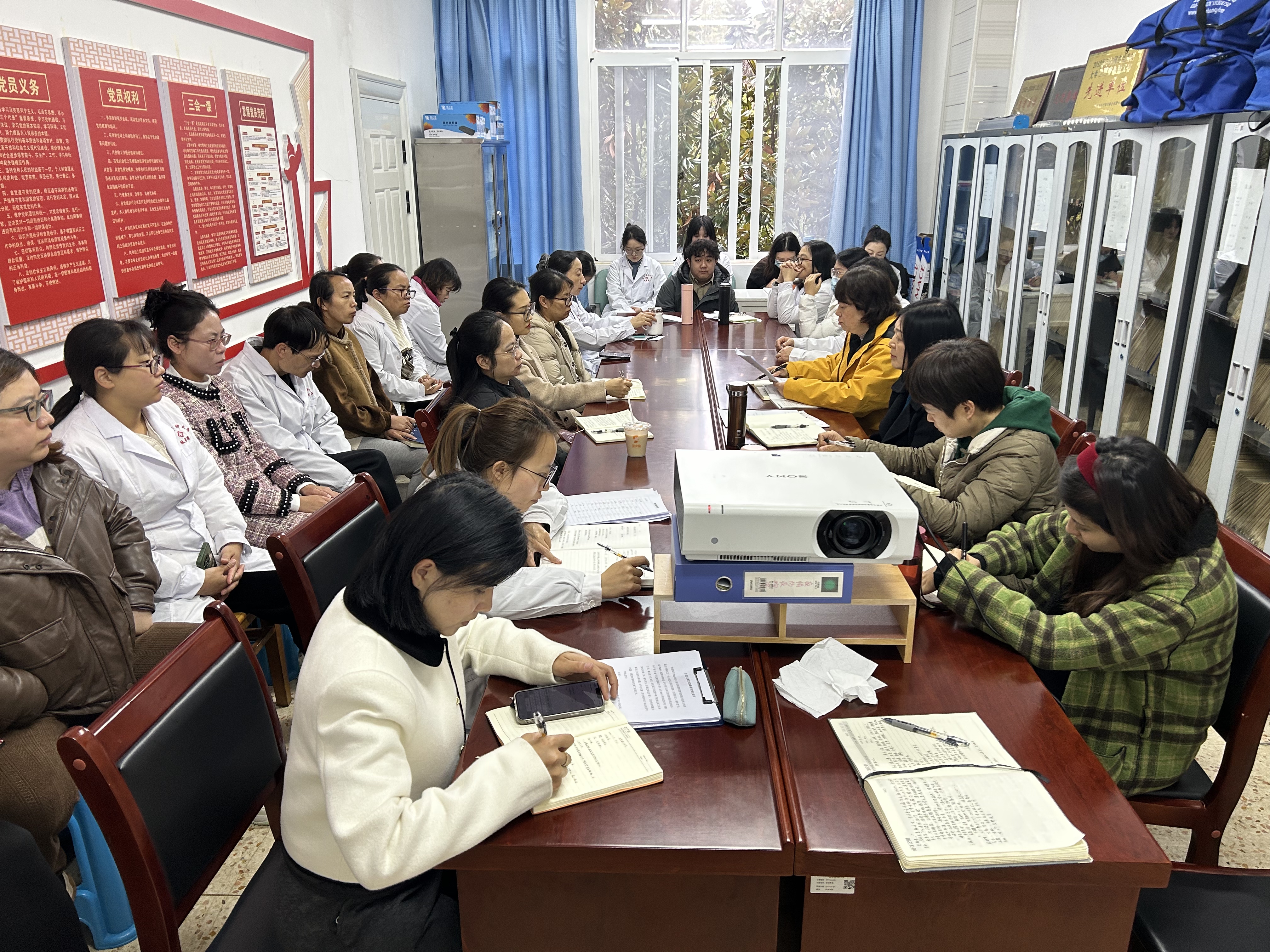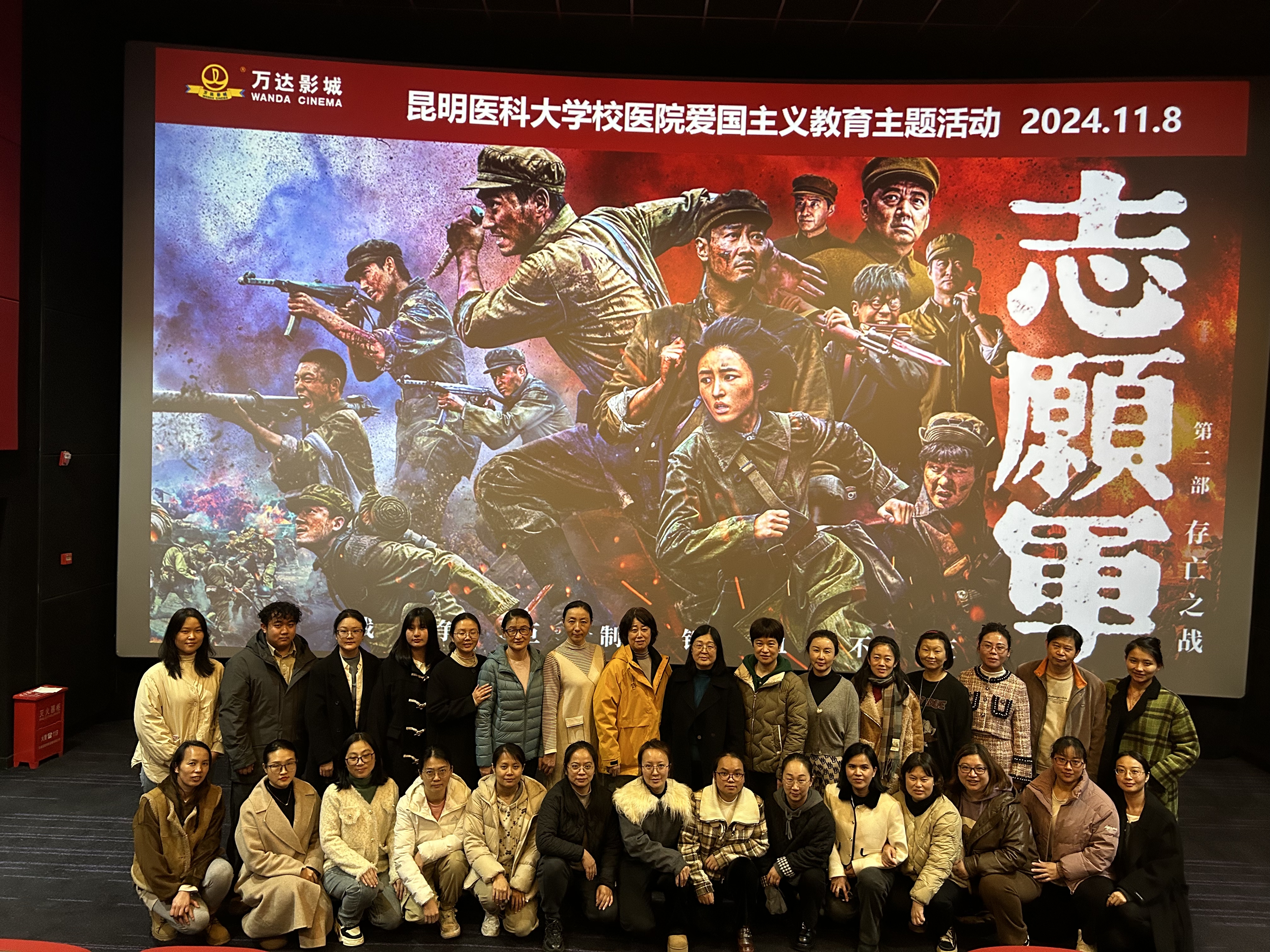 会后,校医院开展爱国主义教育主题活动,组织全体职工观看红色影片《志愿军:存亡之战》。本次活动旨在通过重温抗美援朝战争中中国人民志愿军的英勇事迹,弘扬爱国精神,厚植家国情怀,增强党员党性修养及职工的政治素养和工作能力。在今后工作中,将时刻铭记历史,牢记使命,立足岗位,尽职尽责,笃行实干,为学校及医院高质量发展增光添彩。