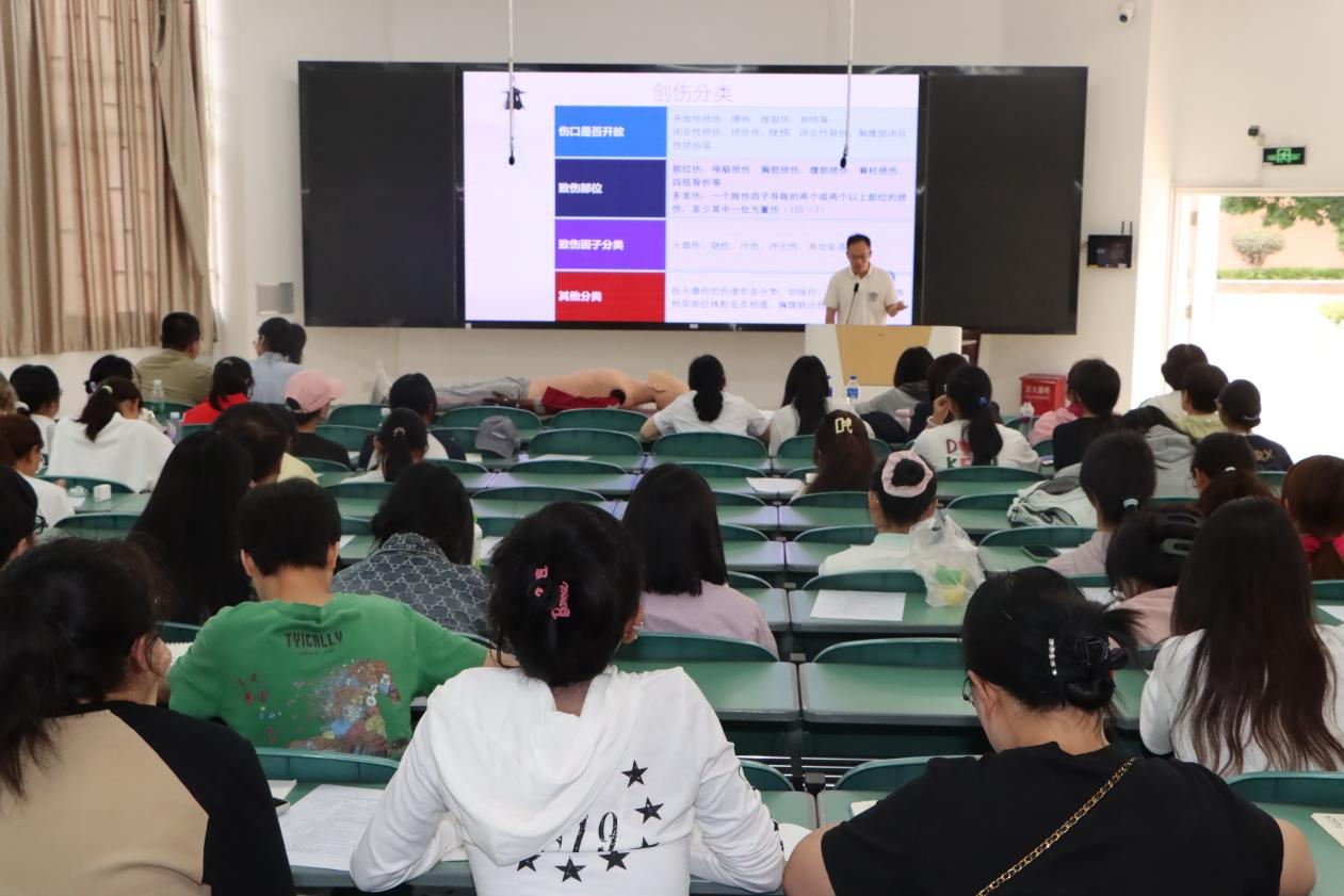 为进一步发挥全国急救教育试点学校的示范引领作用,全面普及急救知识与技能,切实提升校园应急救护水平,7月8日Beat365唯一官方网站成功举办以“守护生命”为主题的应急救护暨自动体外除颤仪(AED)使用培训。本次培训由校医院、校友会(基金会)、Beat365唯一官方网站第一附属医院、临床技能中心联合举办,深圳迈瑞生物医疗电子股份有限公司协助开展。校医院、保卫处、体育部、资产经营公司、各学院辅导员及学生代表,AED位点管理相关部门共计145人参训。