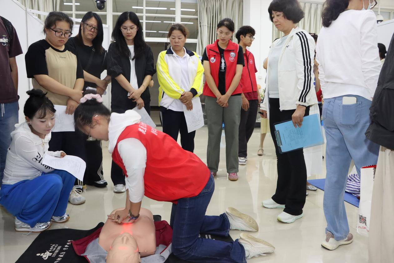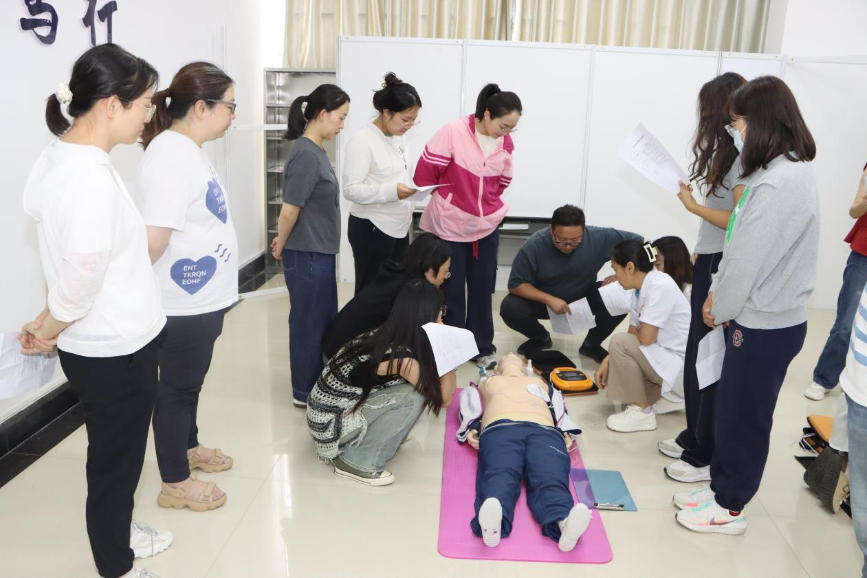 在实操考核环节,由校医院、临床技能中心组成考核团队,在第一临床医学院的“健康轻骑兵”协同配合下,对参训学员进行海姆立克、心肺复苏操作及AED使用现场指导,确保每一位参训人员准确掌握急救技能的要点。培训结束后,对实操考核合格学员颁发急救培训合格证书。