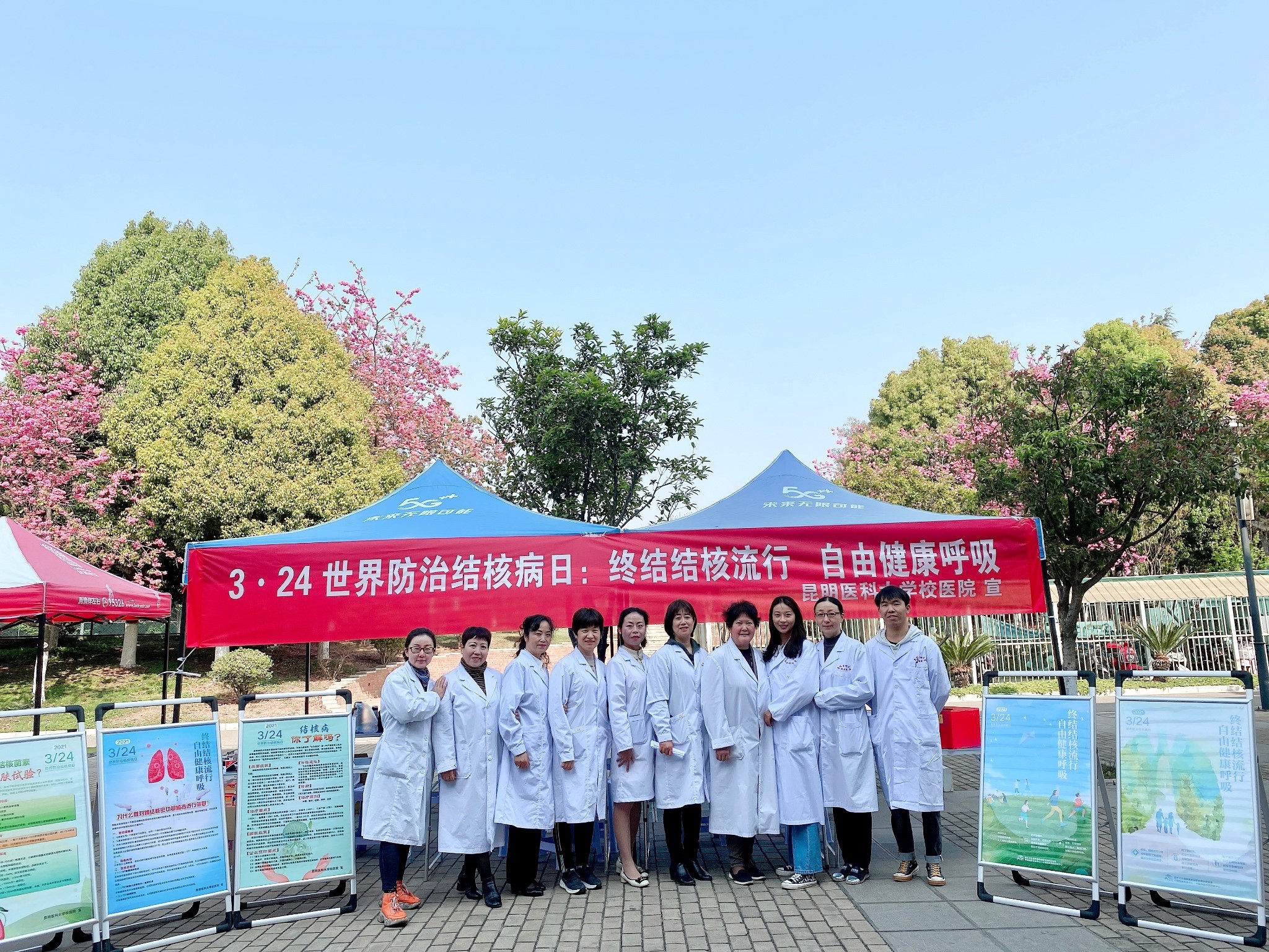 2021年3月24日是第26个“世界防治结核病日”,今年的宣传主题“终结结核流行,自由健康呼吸”。上午10时校医院在呈贡校区开展“世界防治结核病日”宣传活动。
