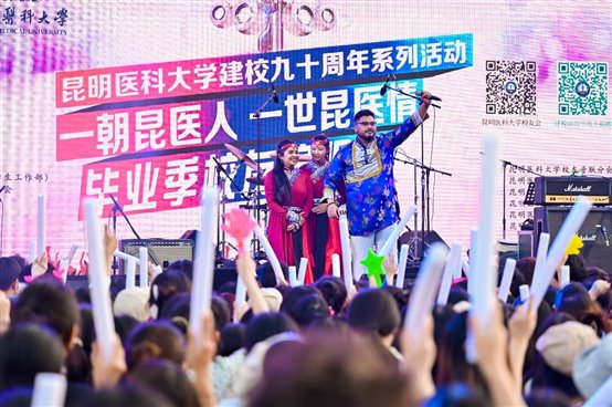 On the afternoon of May 26th, Kunming Medical University held the alumni concert, one of a series of activities for the 90th anniversary of its founding. At the concert, a MBBS student (SOUMIK DAS), who is graduating this year, sang Tenger's song "Paradise" in Mongolian costumes, at the same time two international students danced in Mongolian costumes. With beautiful voice and dance, audience cheered loudly. At the end of the performance, the concert was climaxed by Soumik’s shouting "I love China, I love KMU".