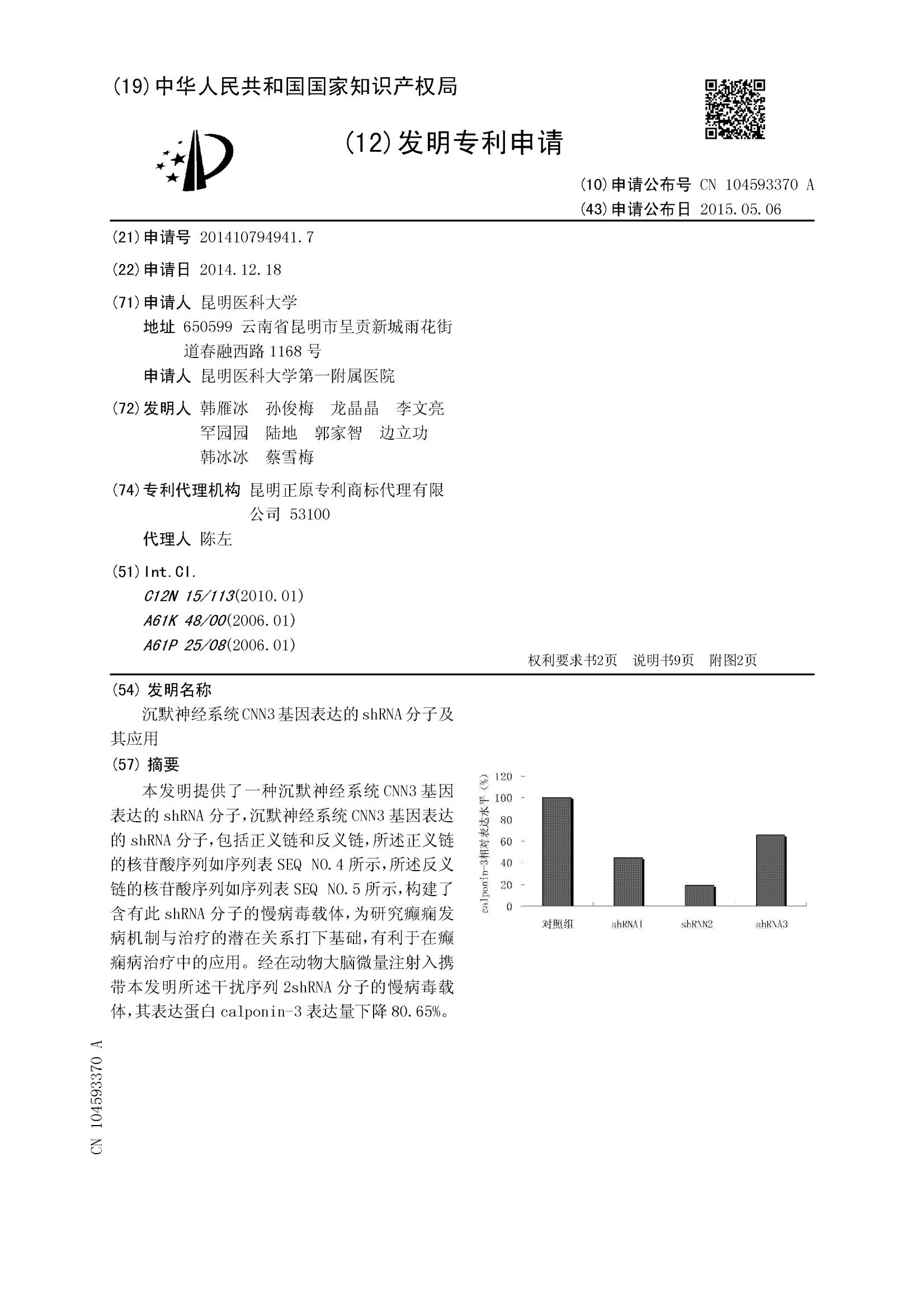 沉默神经系统CNN3基因表达的shRNA分子及其应用