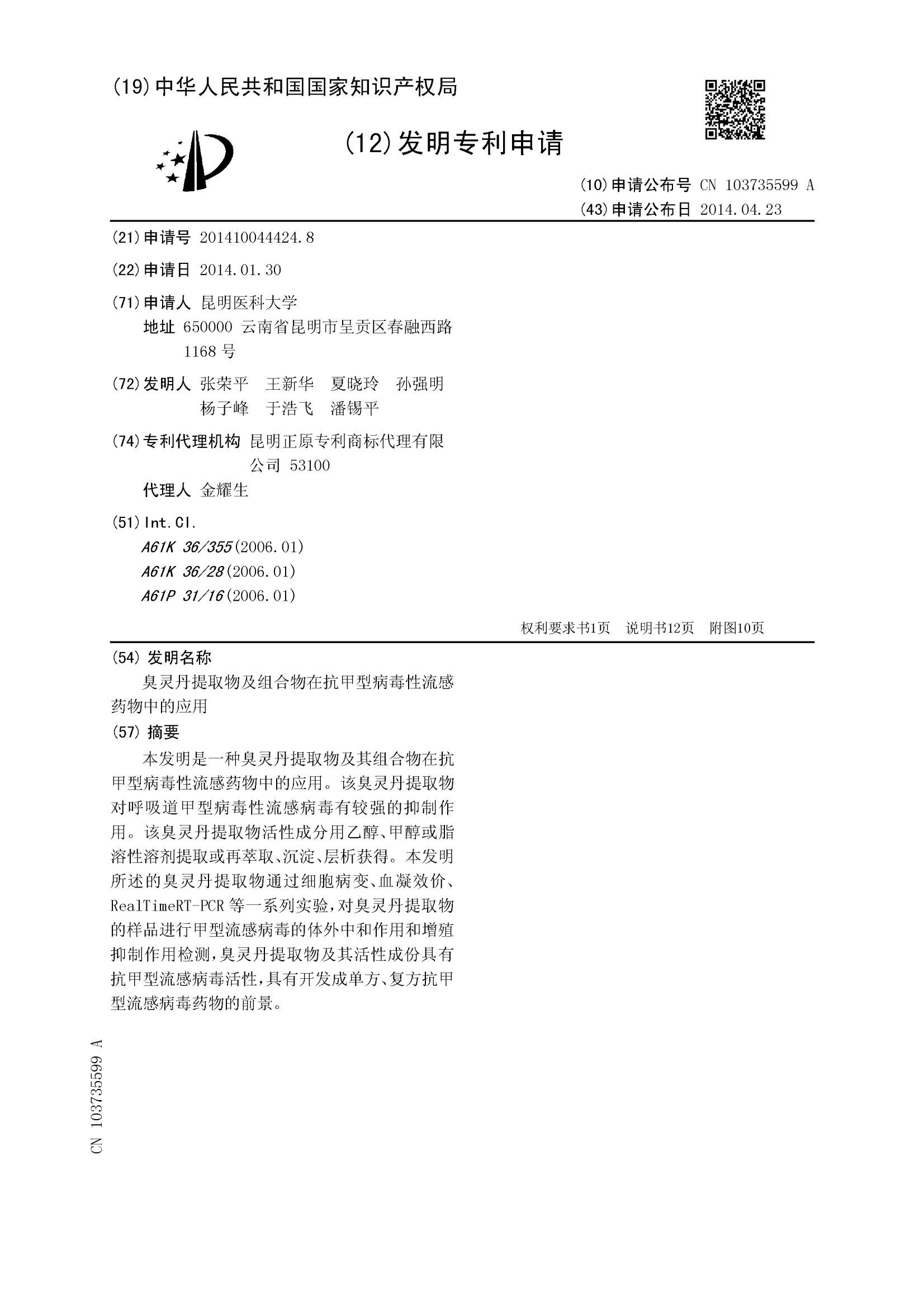 臭灵丹提取物及组合物在抗甲型病毒性流感药物中的应用
