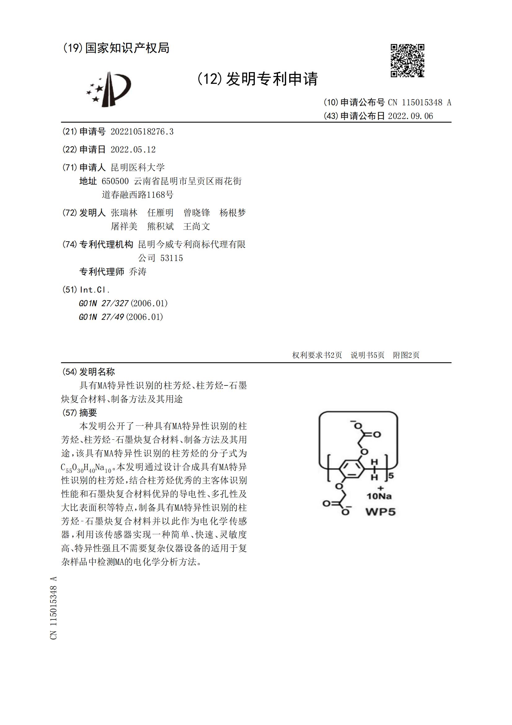 具有MA特异性识别的柱芳烃、柱芳烃-石墨炔复合材料、制备方法及其用途