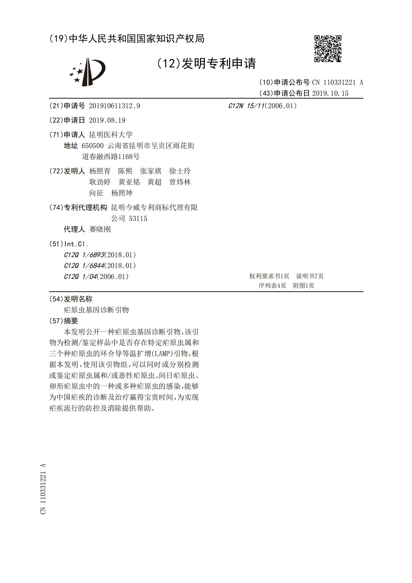 疟原虫基因诊断引物