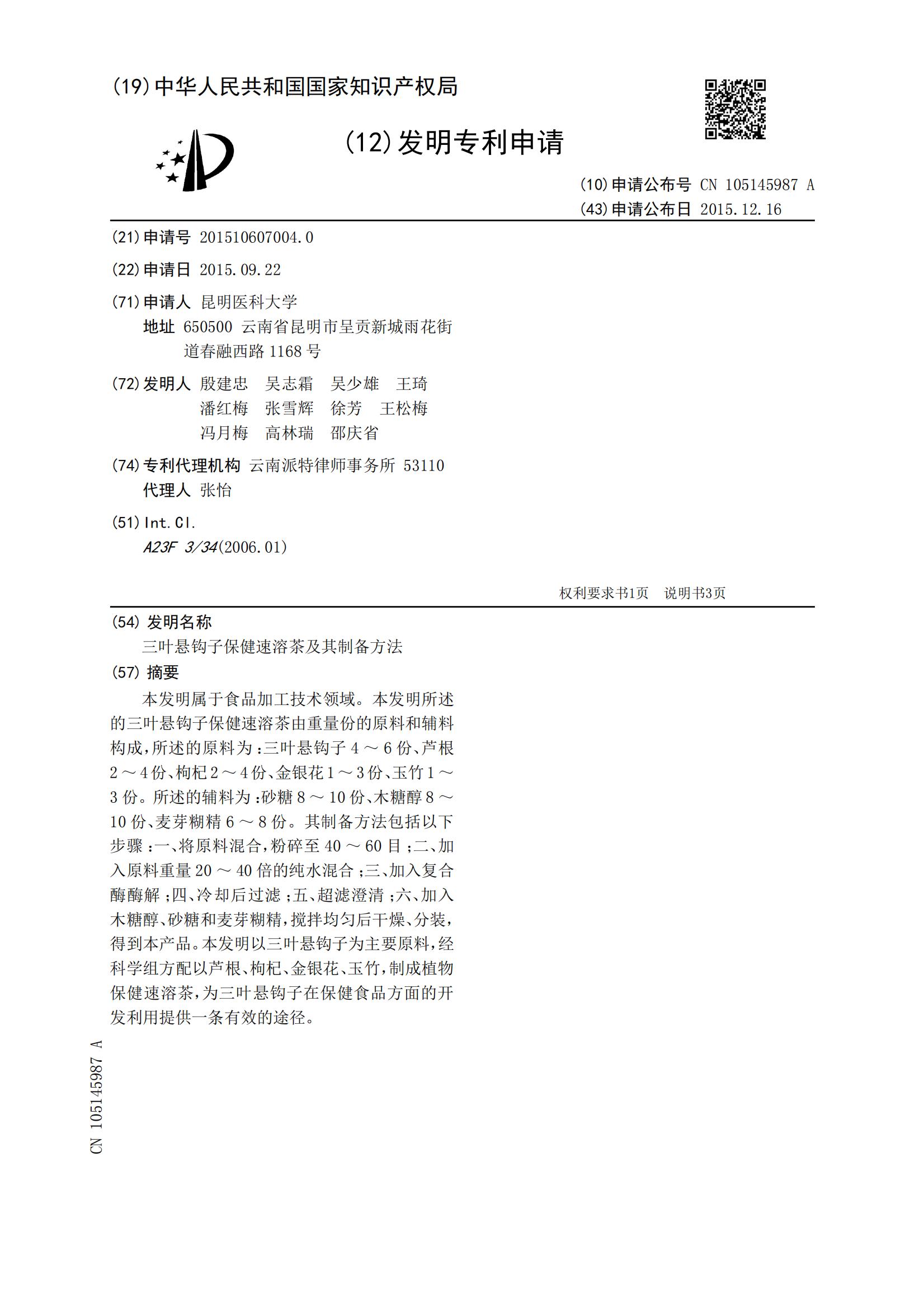 三叶悬钩子保健速溶茶及其制备方法