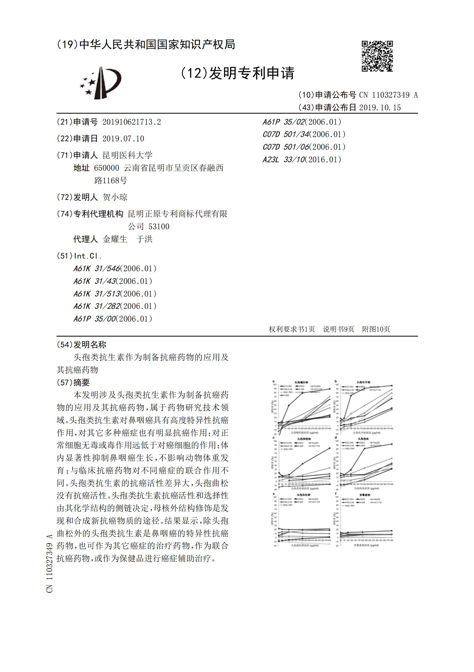 头孢类抗生素作为制备抗癌药物的应用及其抗癌药物