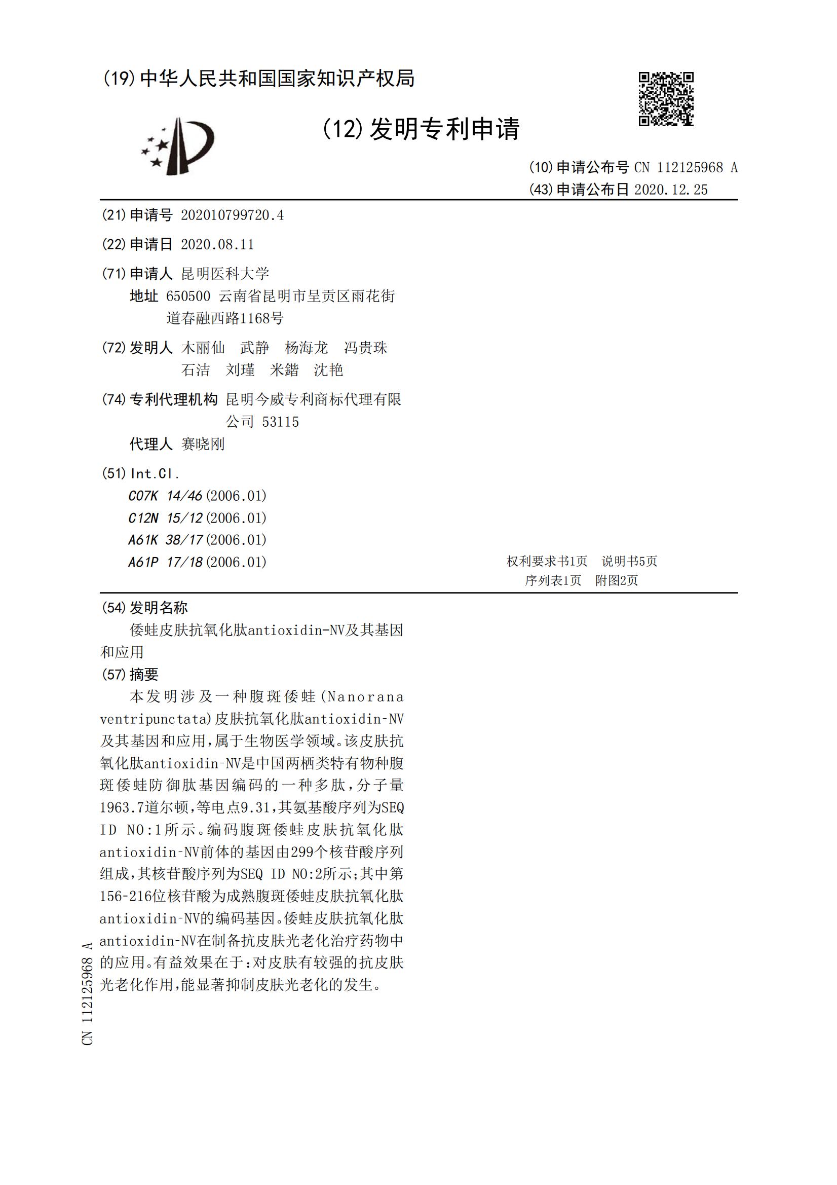 倭蛙皮肤抗氧化肽antioxidin-NV及其基因和应用