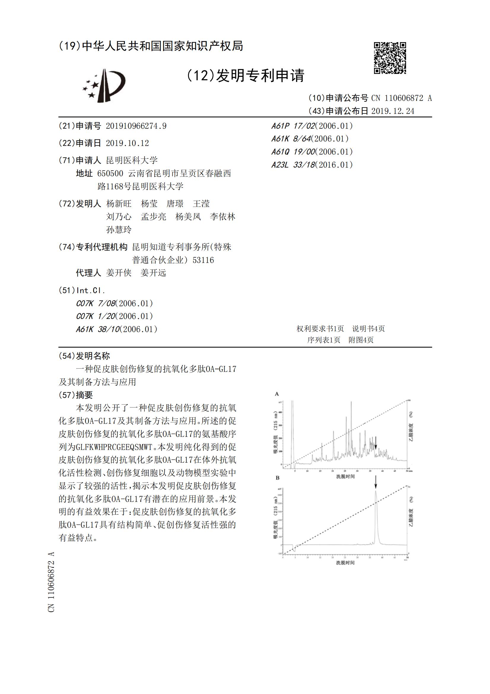 一种促皮肤创伤修复的抗氧化多肽OA-GL17及其制备方法与应用