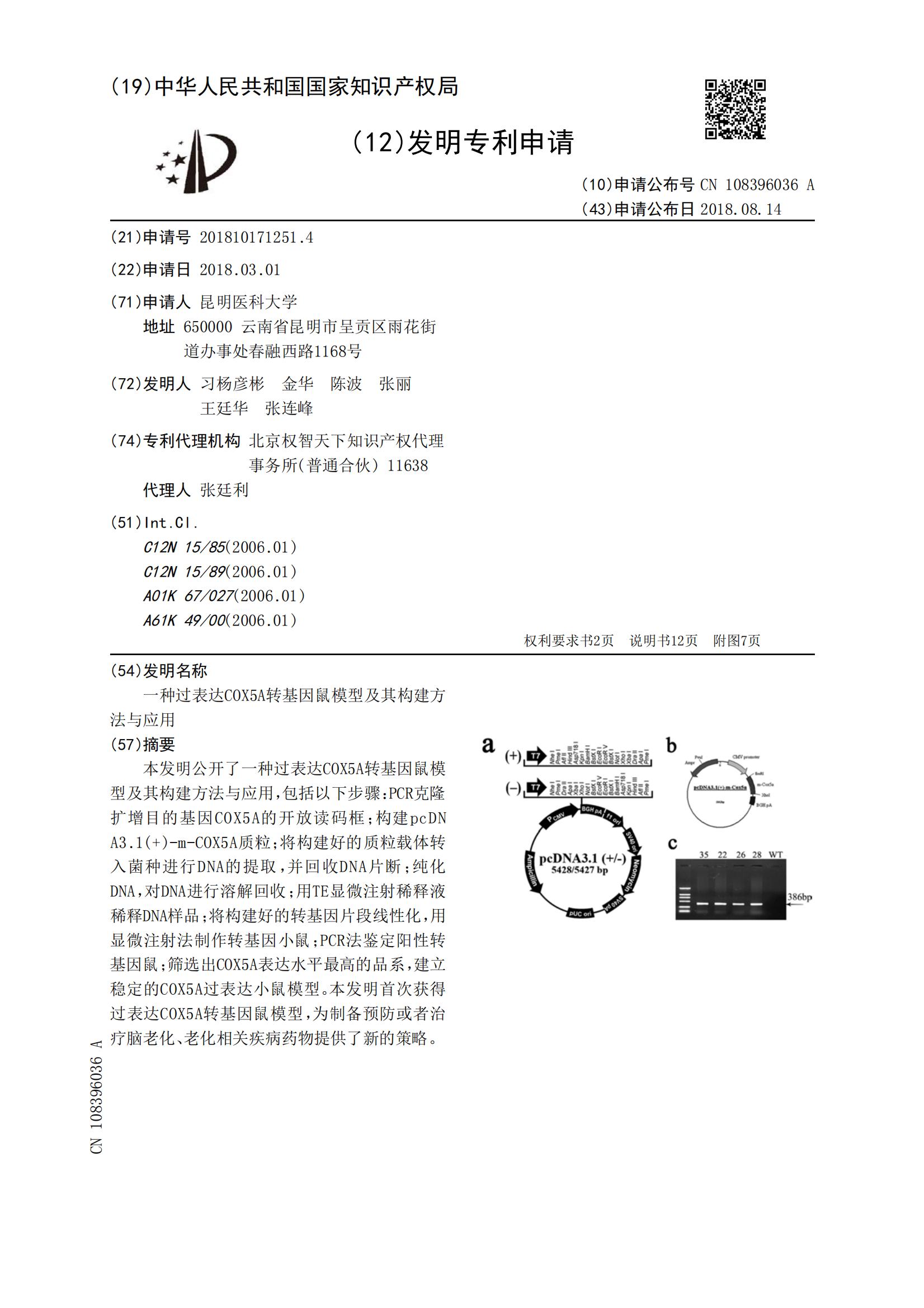 一种过表达COX5A转基因鼠模型及其构建方法与应用